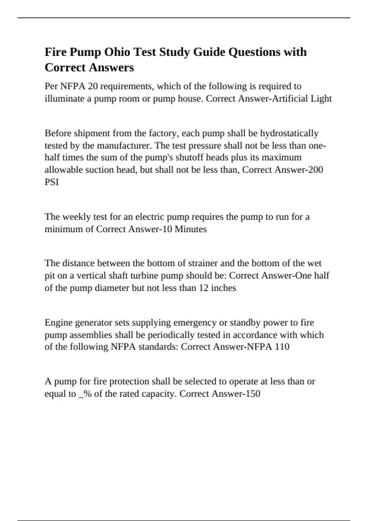 Fire Pump Ohio Test Study Guide Questions with Correct Answers