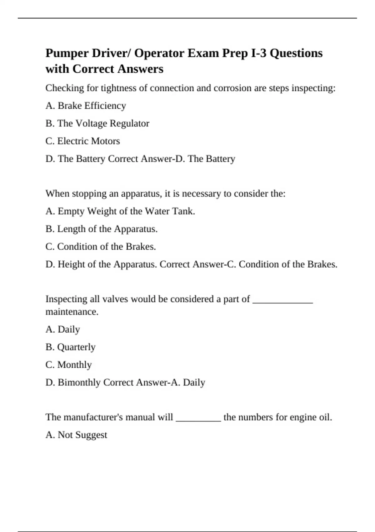 Pumper Driver/ Operator Exam Prep I-3 Questions with Correct Answers