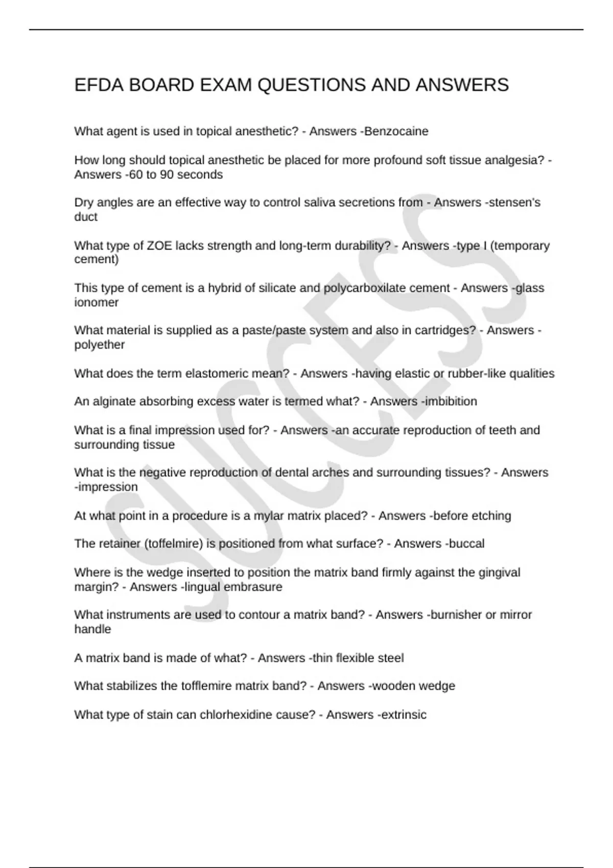 EFDA BOARD EXAM QUESTIONS AND ANSWERS