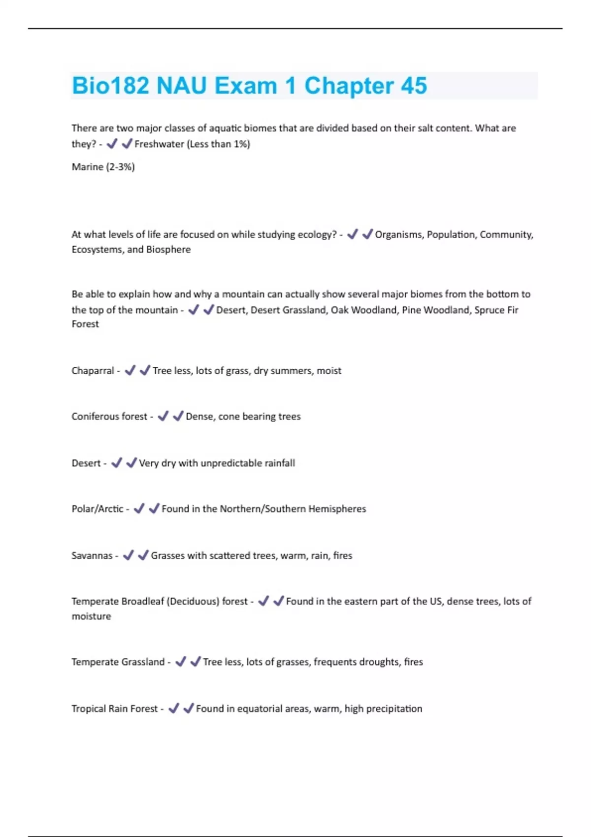 Chaparral - Tree less, lots of grass, dry summers, moist