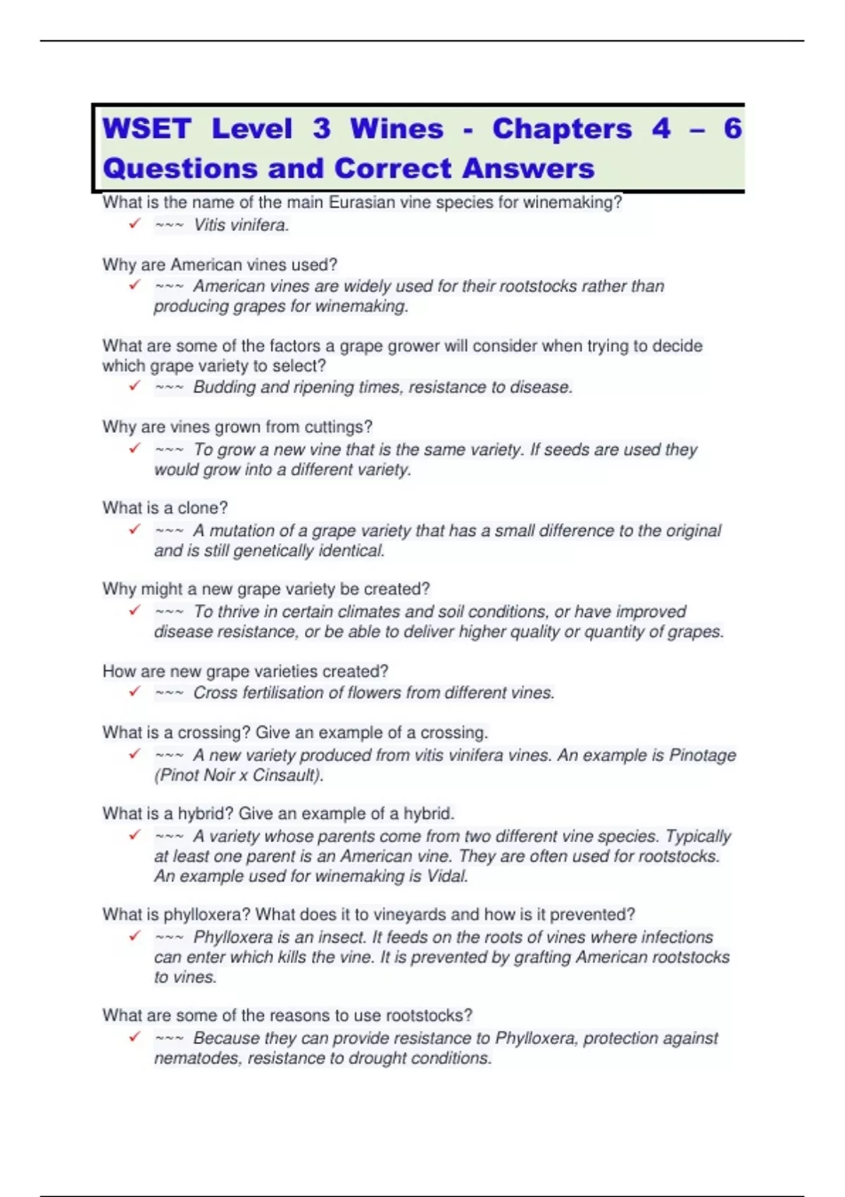 ✓ ~~~ Because they can provide resistance to Phylloxera, protection against