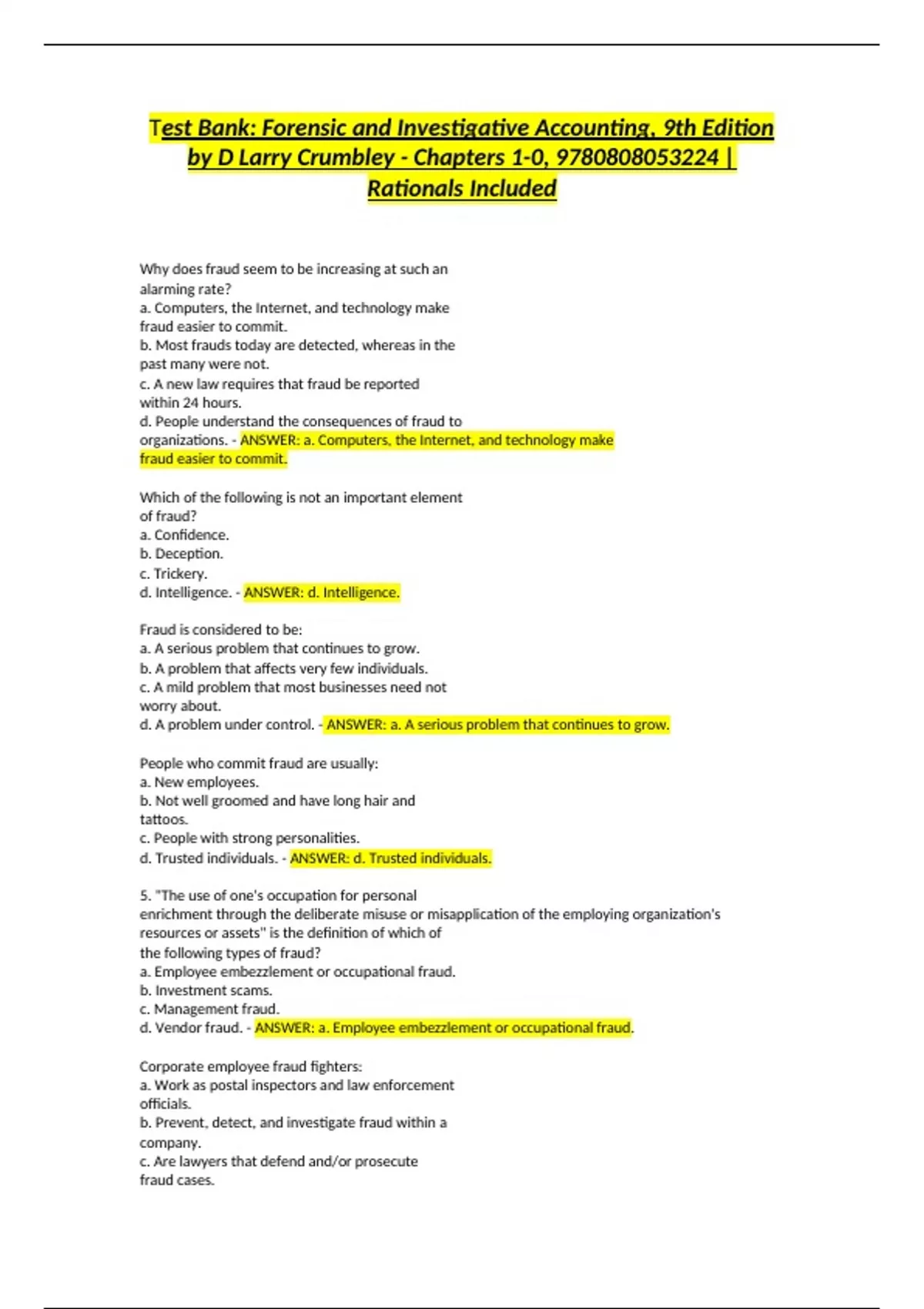 d. None of the above statements are true. - ANSWER: b. Fraud is often labeled the fastest growing