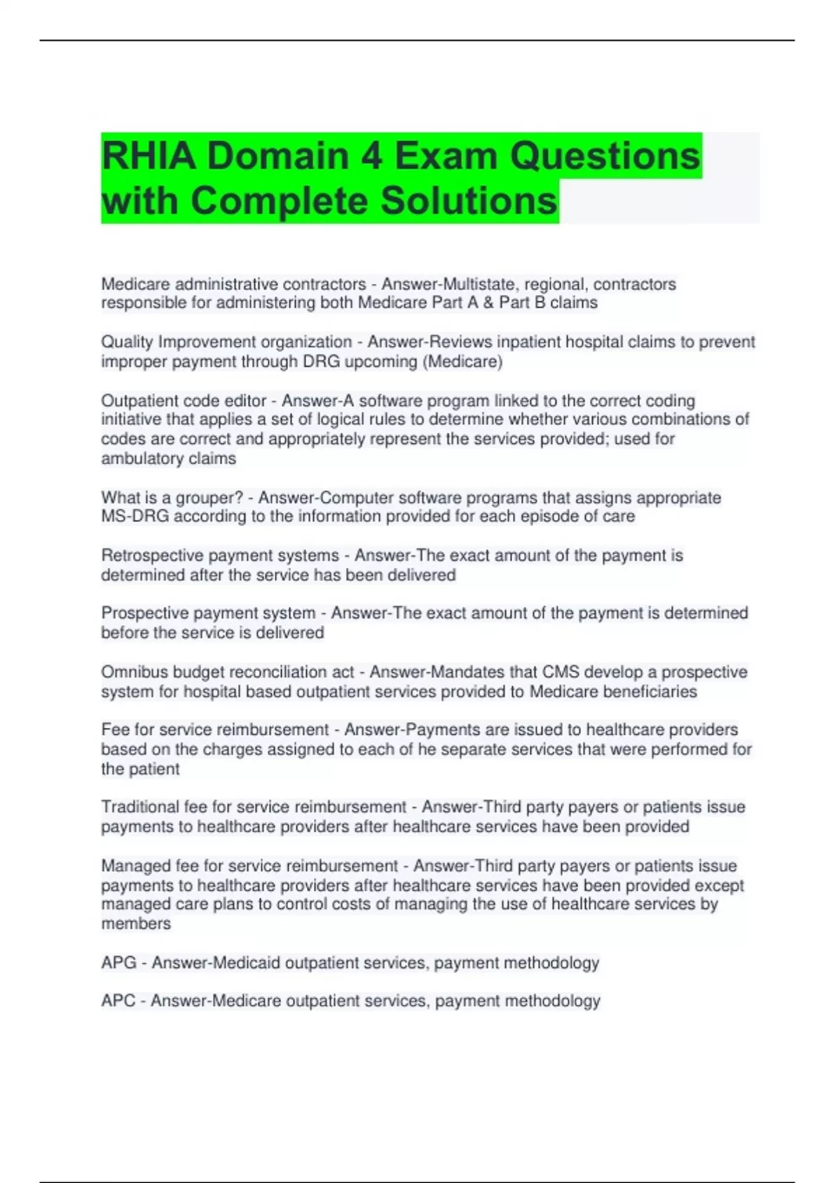 Prospective payment system - Answer-The exact amount of the payment is determined