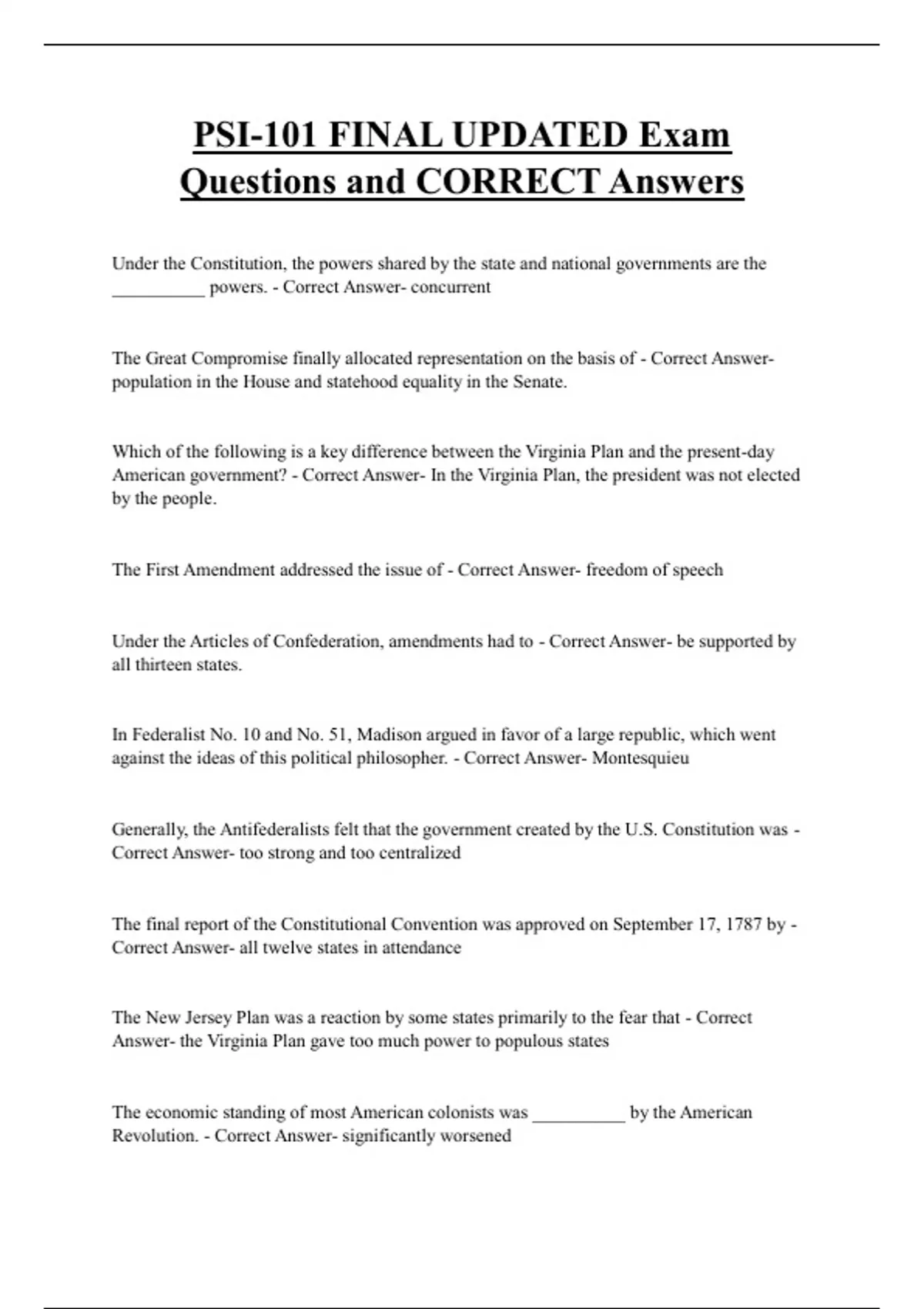 Questions and CORRECT Answers