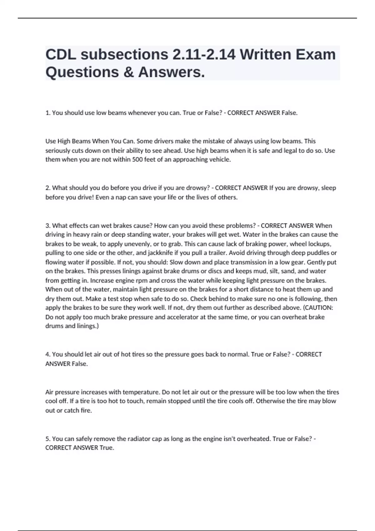 2. What should you do before you drive if you are drowsy? - CORRECT ANSWER If you are drowsy, sleep