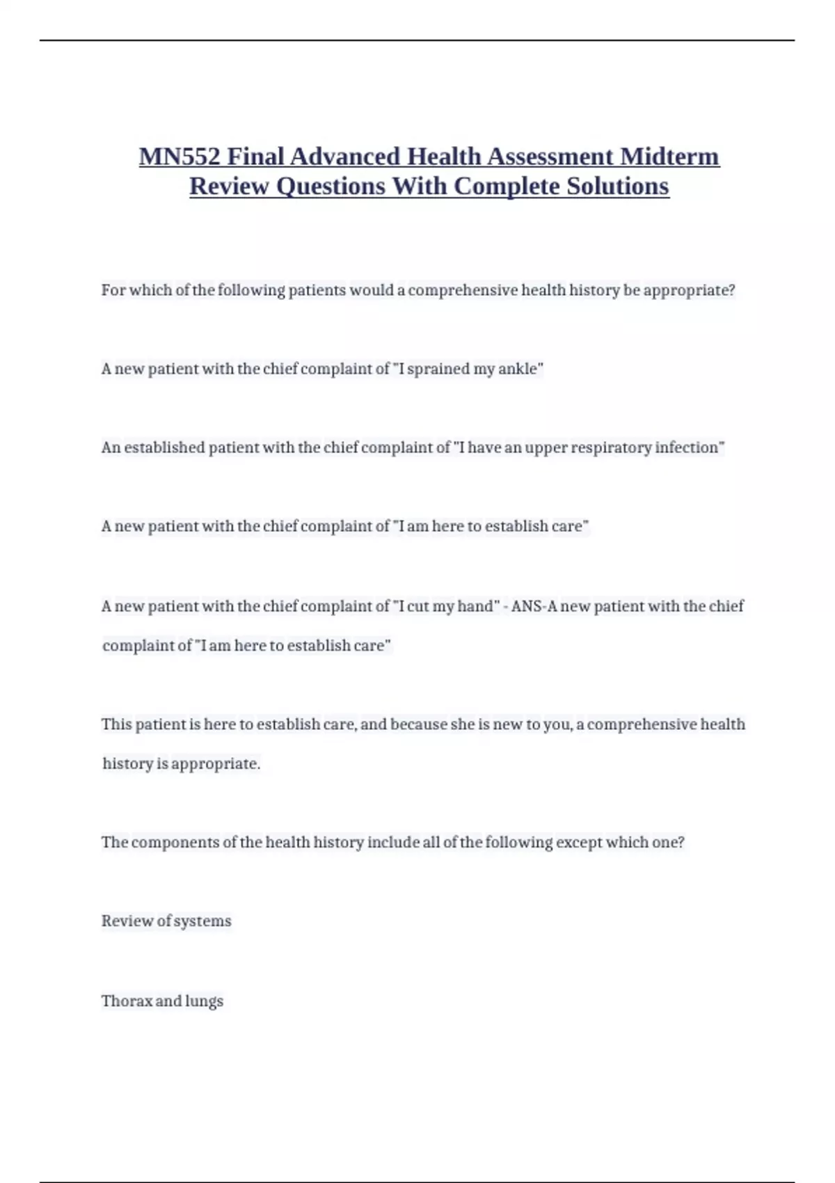 MN552 Final Advanced Health Assessment Midterm
