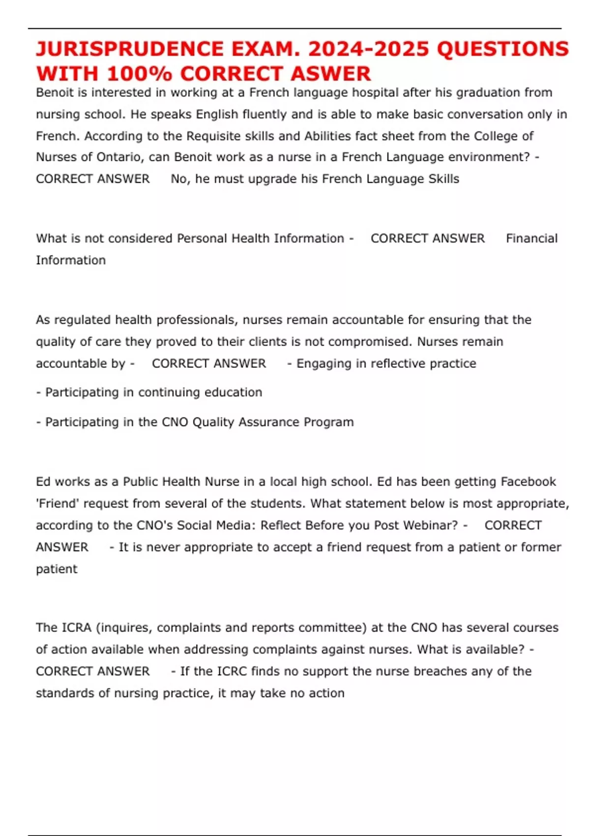 , JURISPRUDENCE EXAM. 2024-2025 QUESTIONS