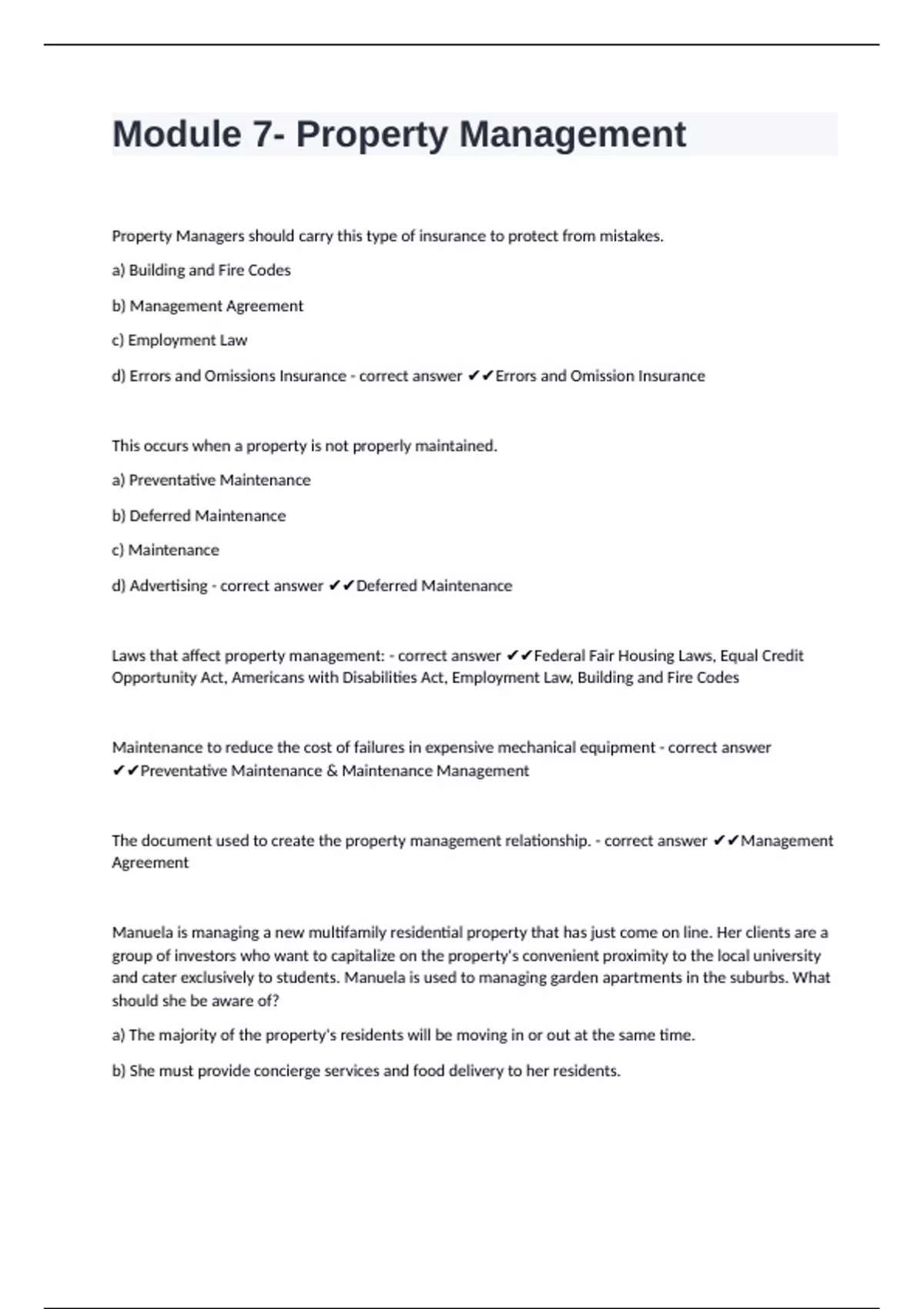 Laws that affect property management: - correct answer ✔✔Federal Fair Housing Laws, Equal Credit