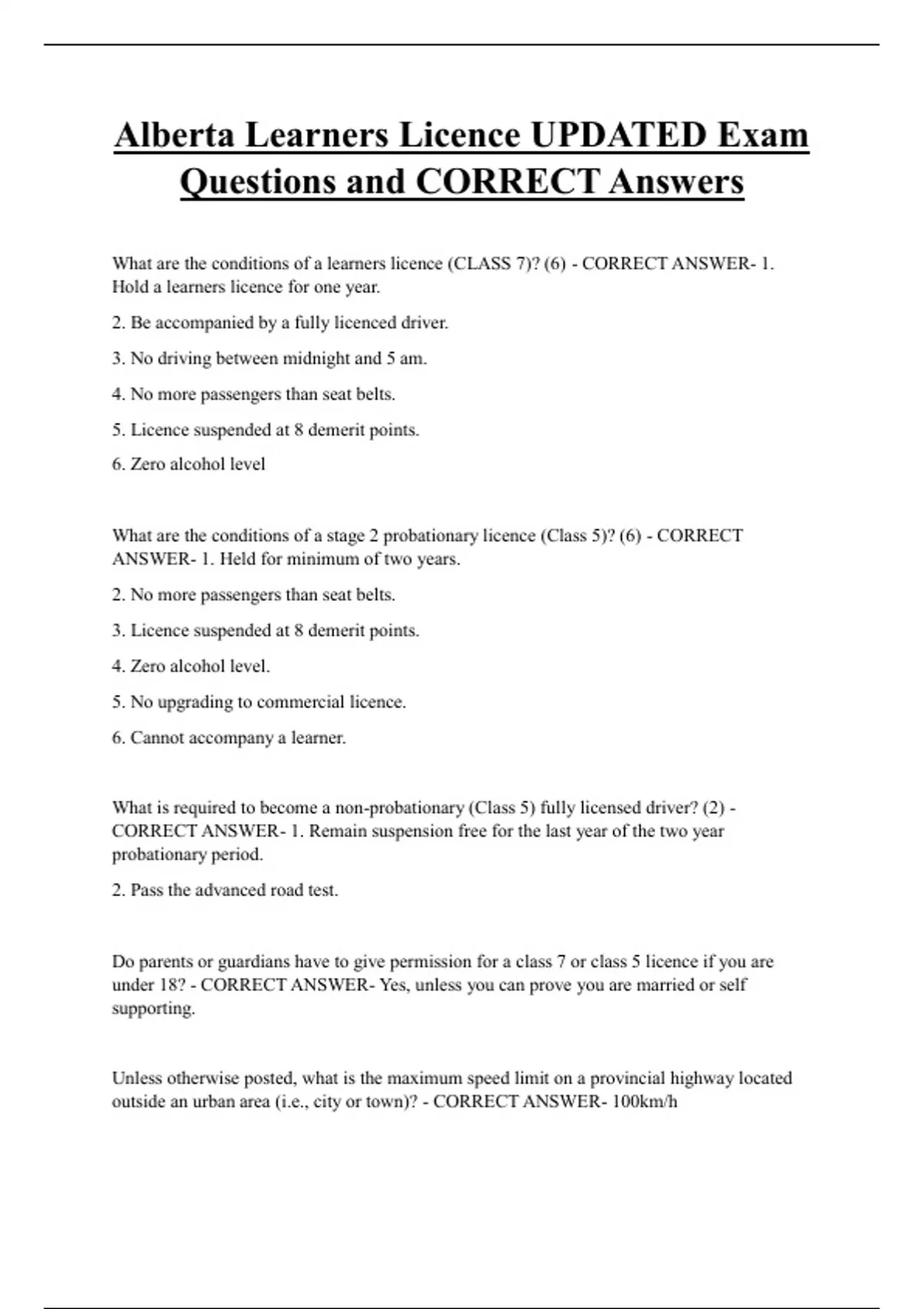 Questions and CORRECT Answers