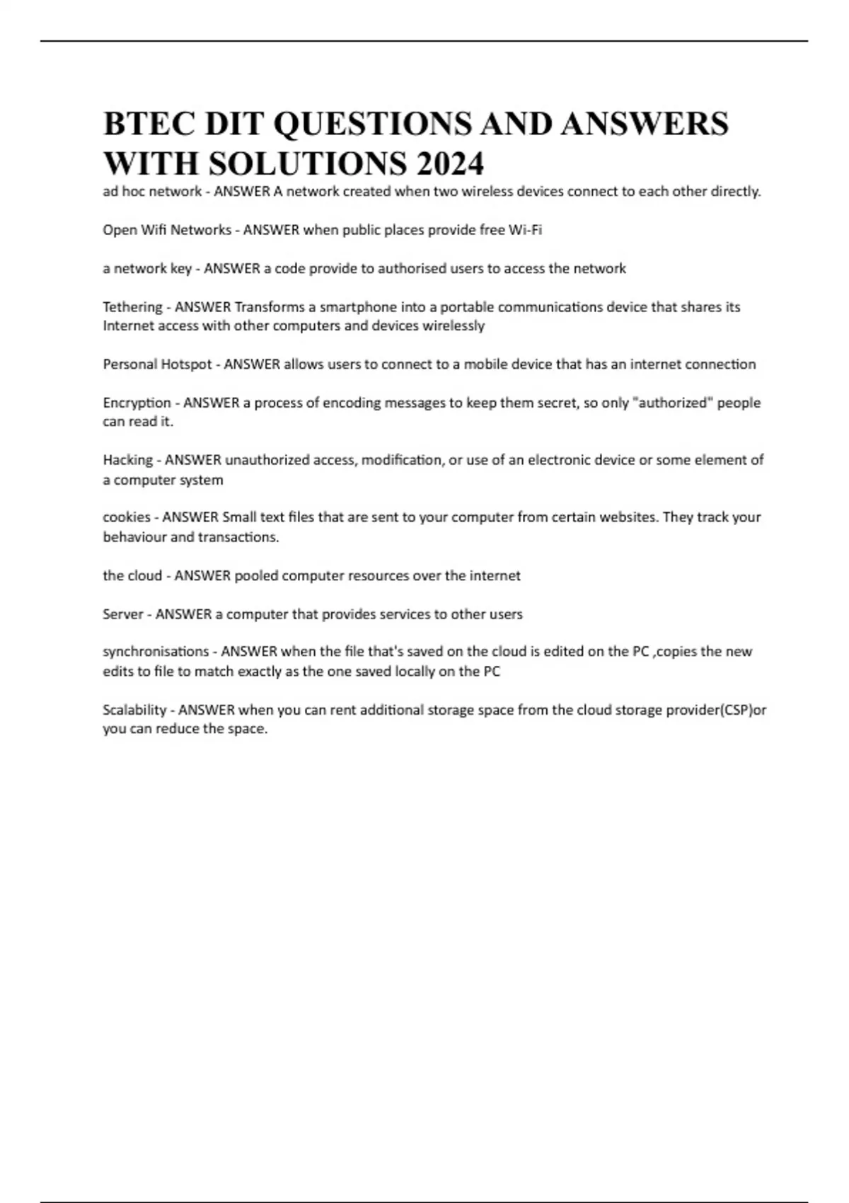 Scalability - ANSWER when you can rent additional storage space from the cloud storage provider(CSP)or