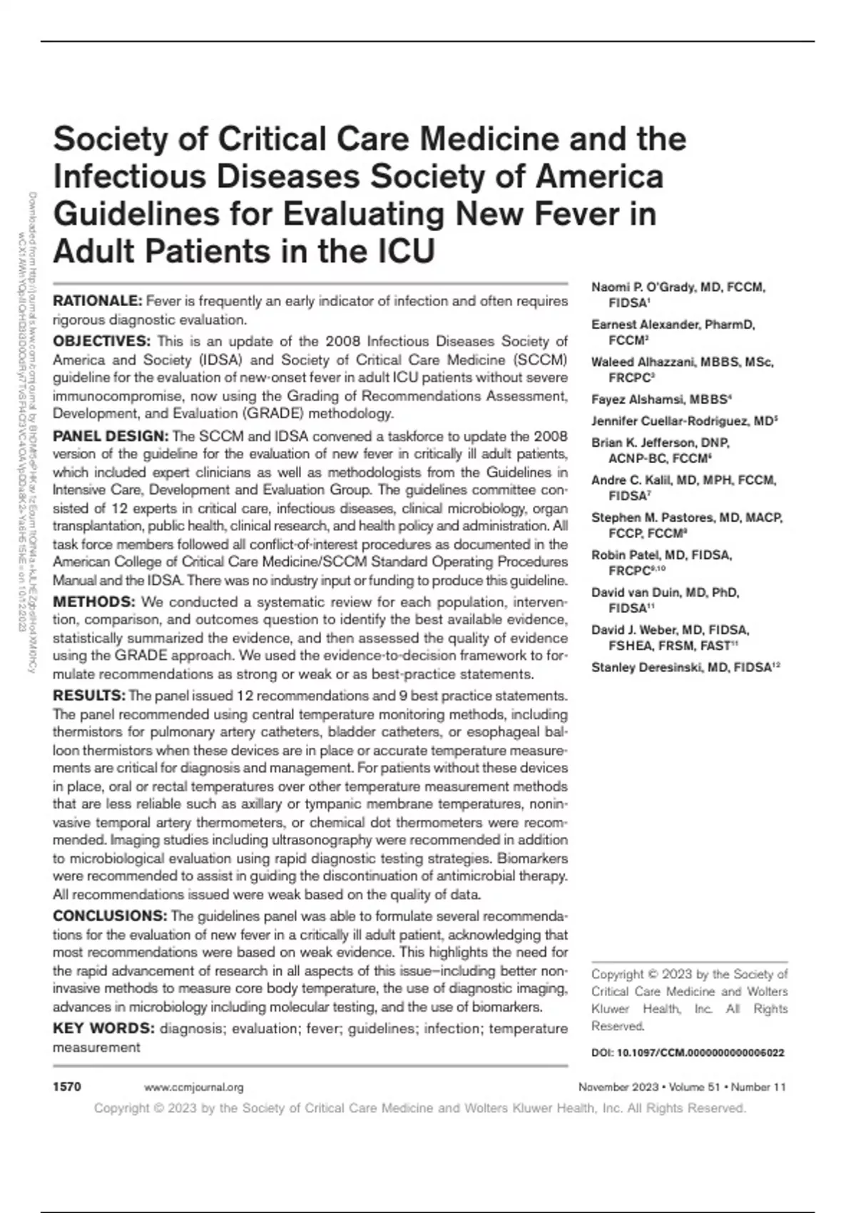 tions for the evaluation of new fever in a critically ill adult patient, acknowledging that