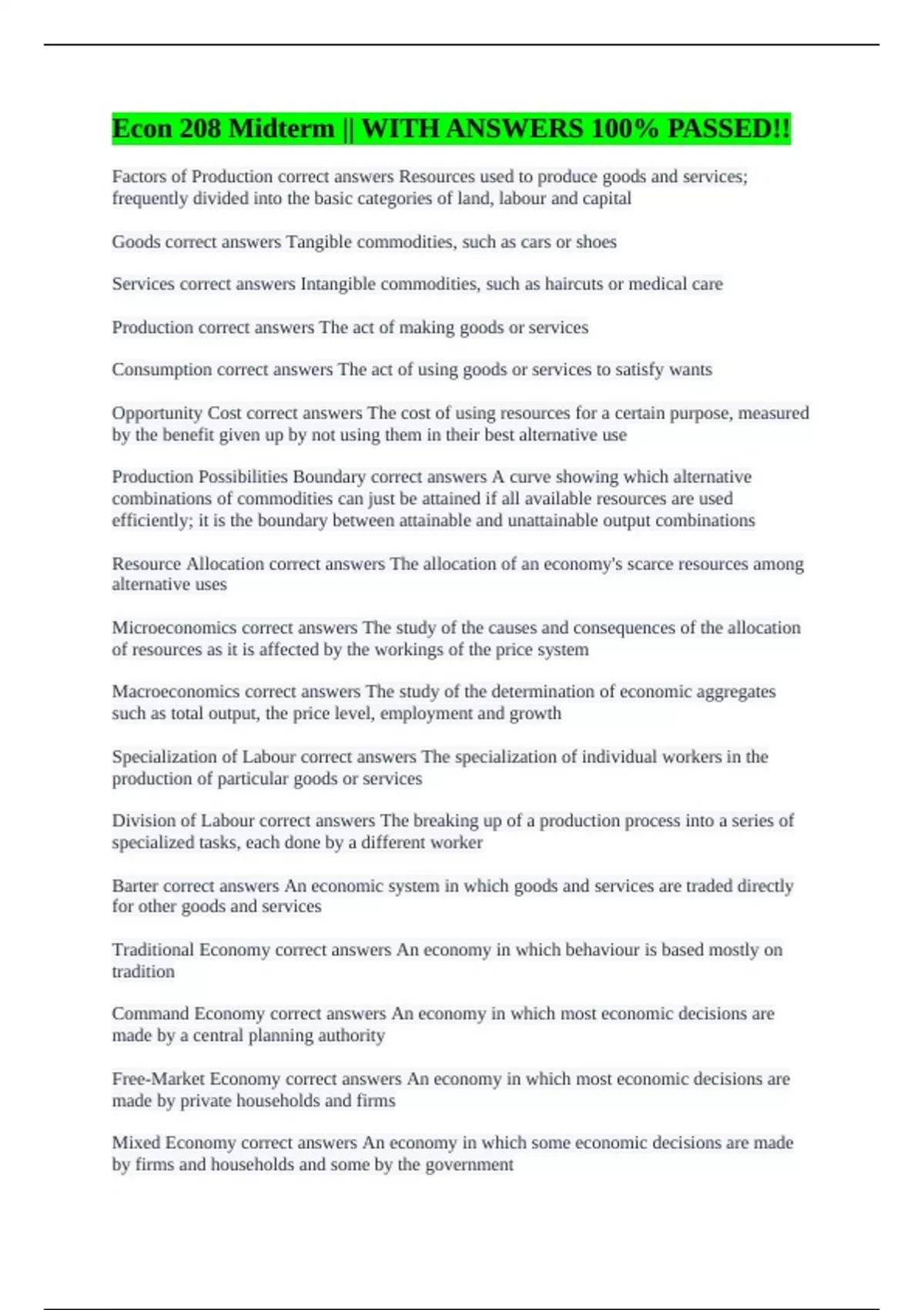 Econ 208 Midterm || WITH ANSWERS 100% PASSED!!