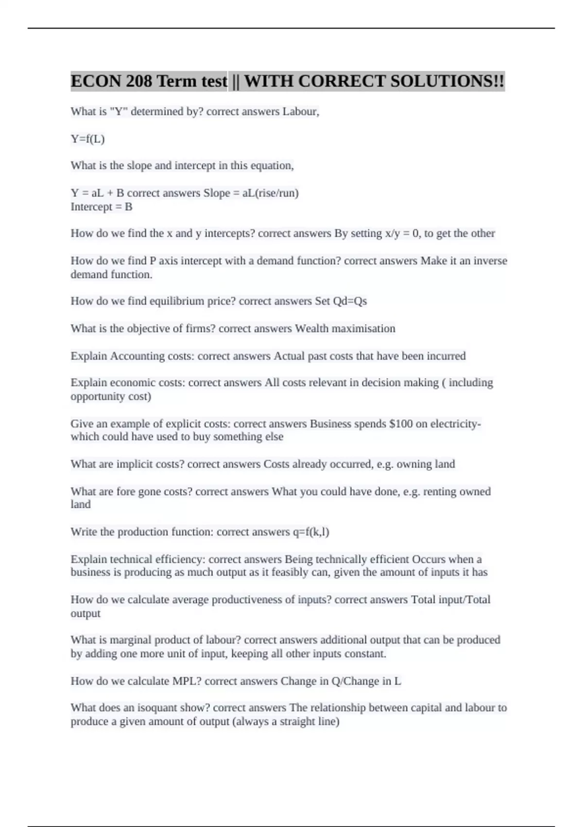 What are implicit costs? correct answers Costs already occurred, e.g. owning land