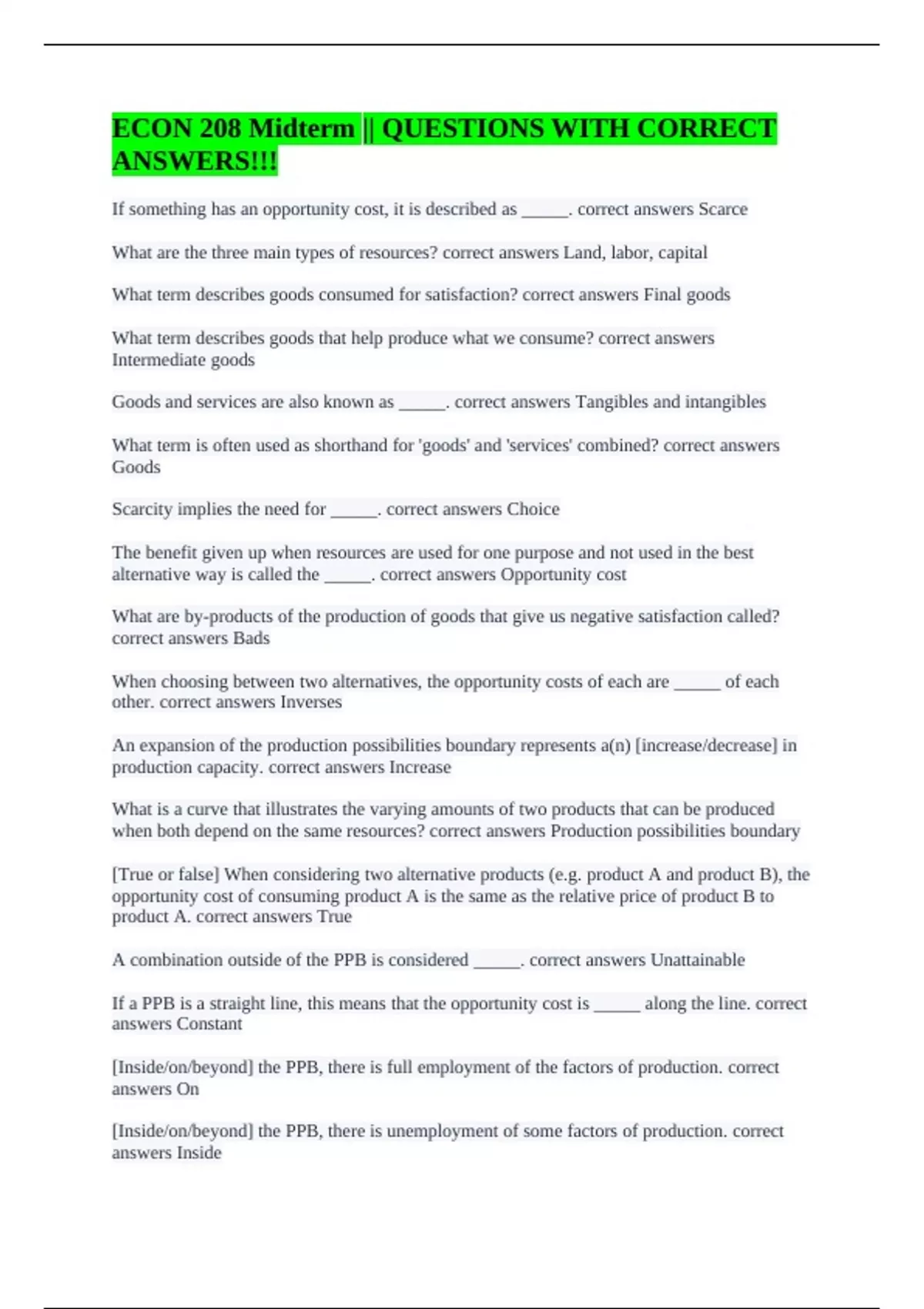 If something has an opportunity cost, it is described as _____. correct answers Scarce