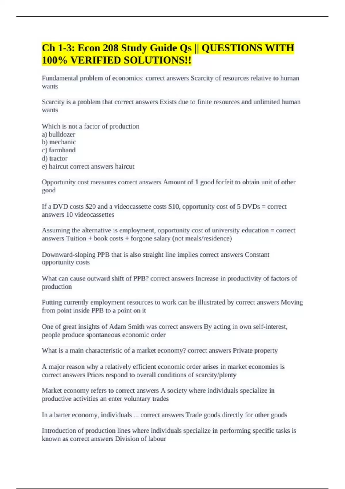Fundamental problem of economics: correct answers Scarcity of resources relative to human