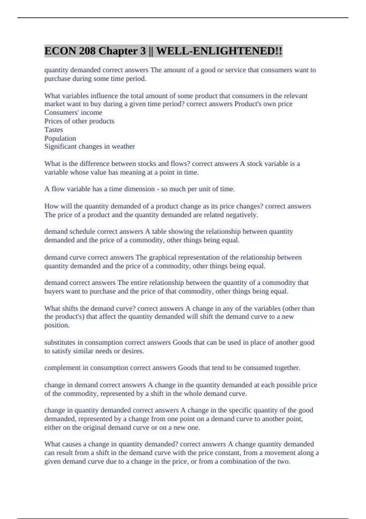quantity demanded correct answers The amount of a good or service that consumers want to