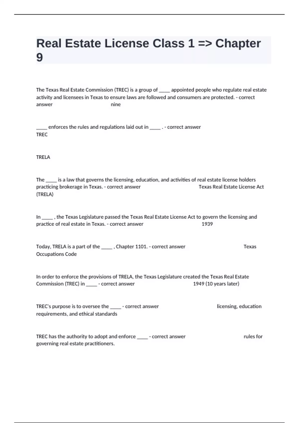 practicing brokerage in Texas. - correct answer Texas Real Estate License Act