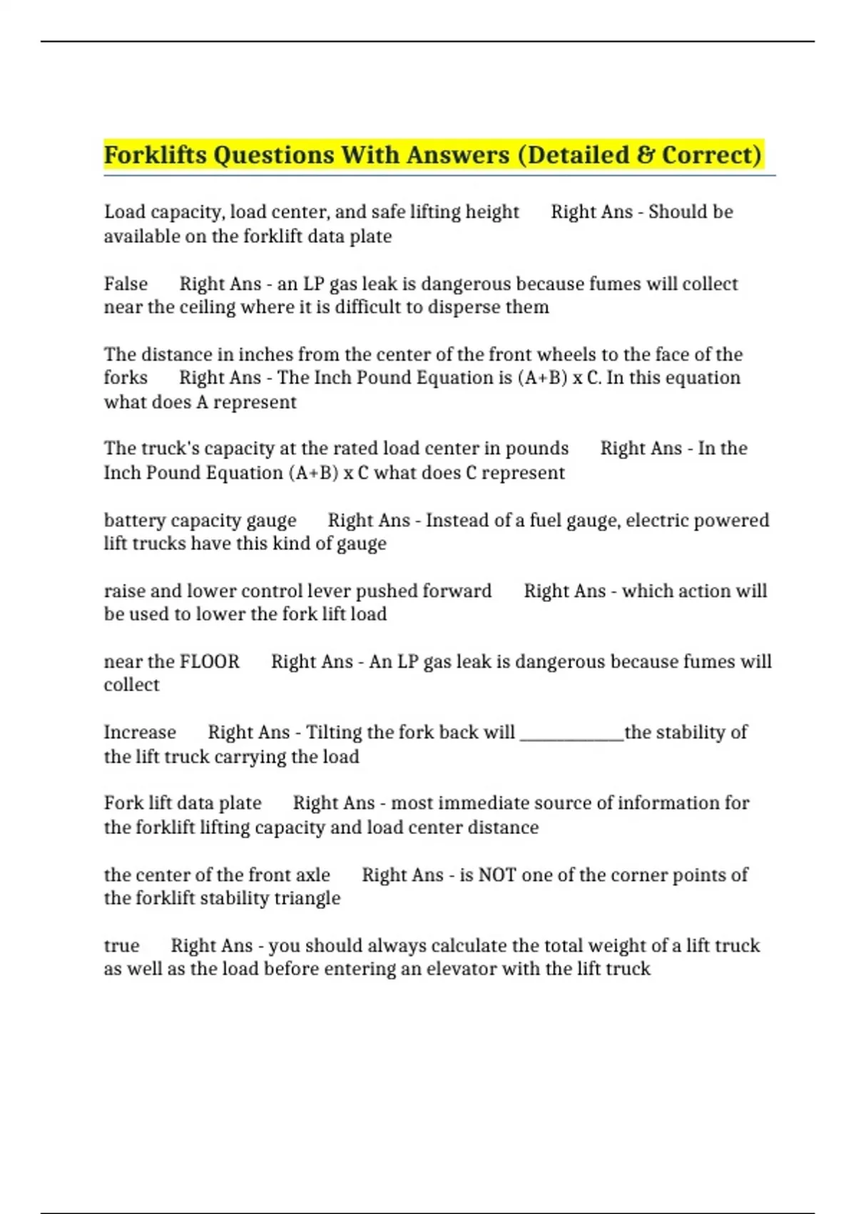 Load capacity, load center, and safe lifting height Right Ans - Should be