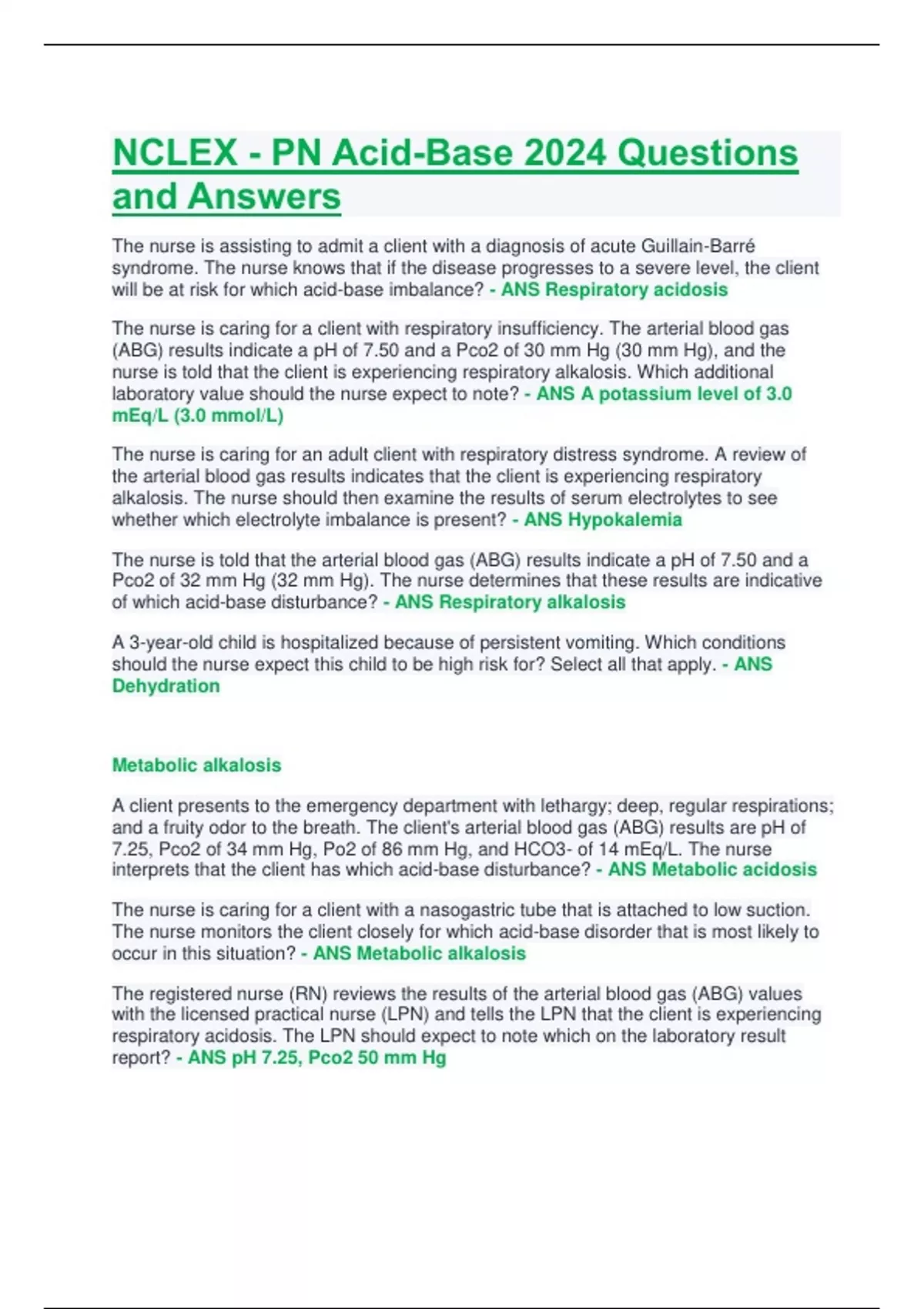 occur in this situation? - ANS Metabolic alkalosis