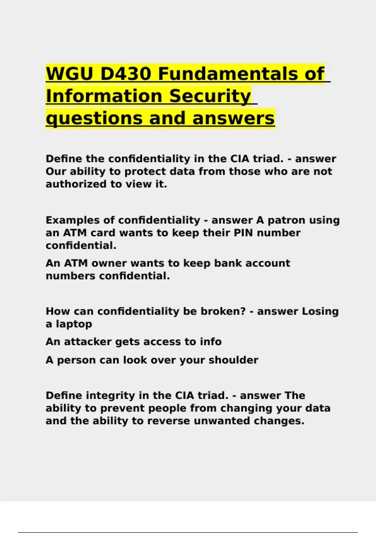 WGU D430 Fundamentals of
