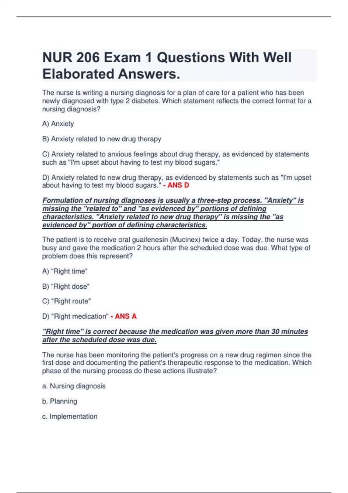 characteristics. "Anxiety related to new drug therapy" is missing the "as