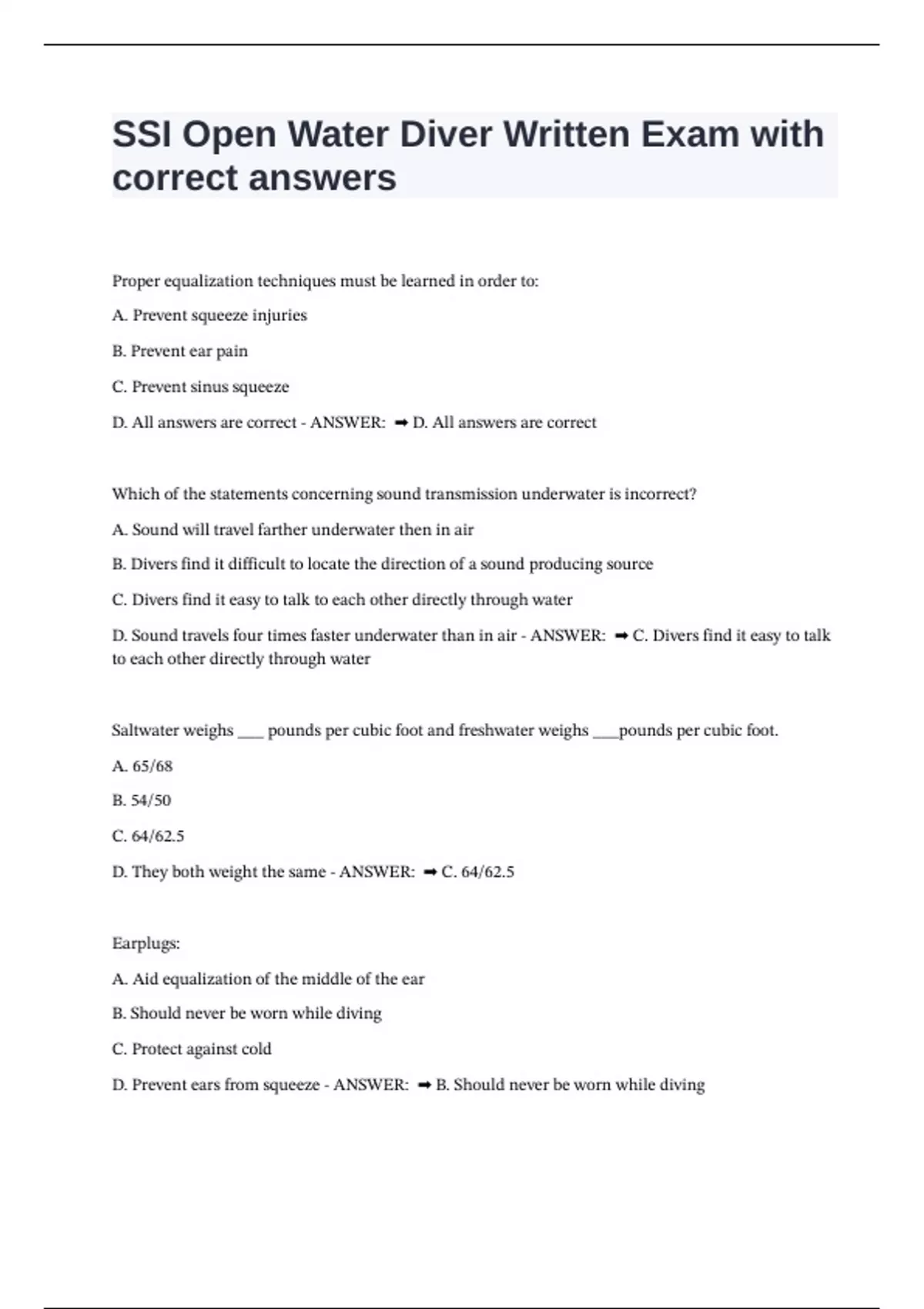 D. Sound travels four times faster underwater than in air - ANSWER: ➡ C. Divers find it easy to talk