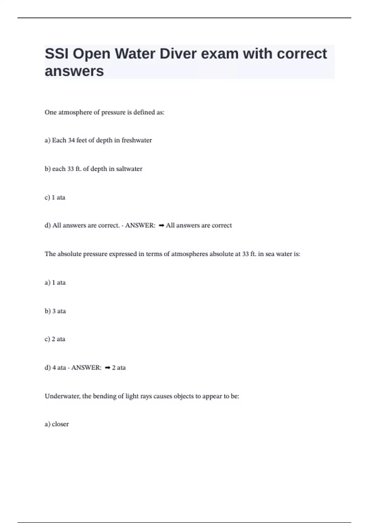 The absolute pressure expressed in terms of atmospheres absolute at 33 ft. in sea water is: