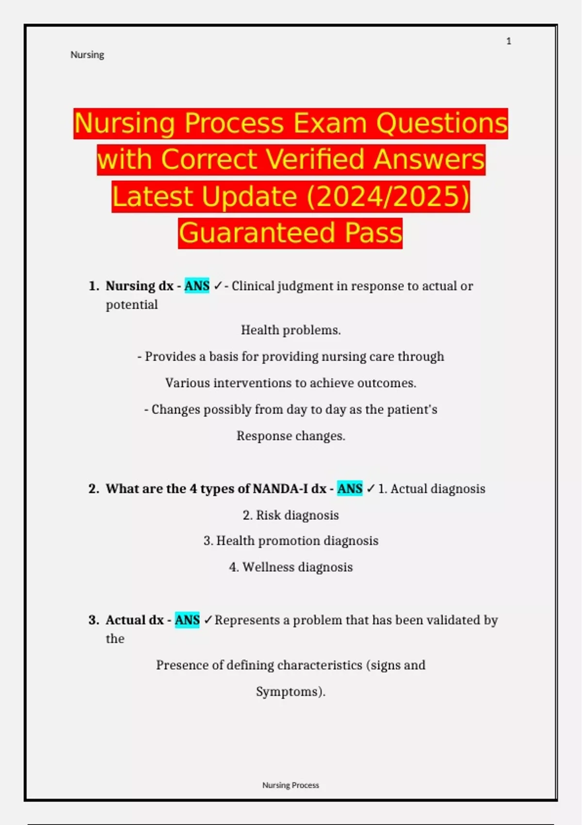 2. What are the 4 types of NANDA-I dx - ANS ✓1. Actual diagnosis