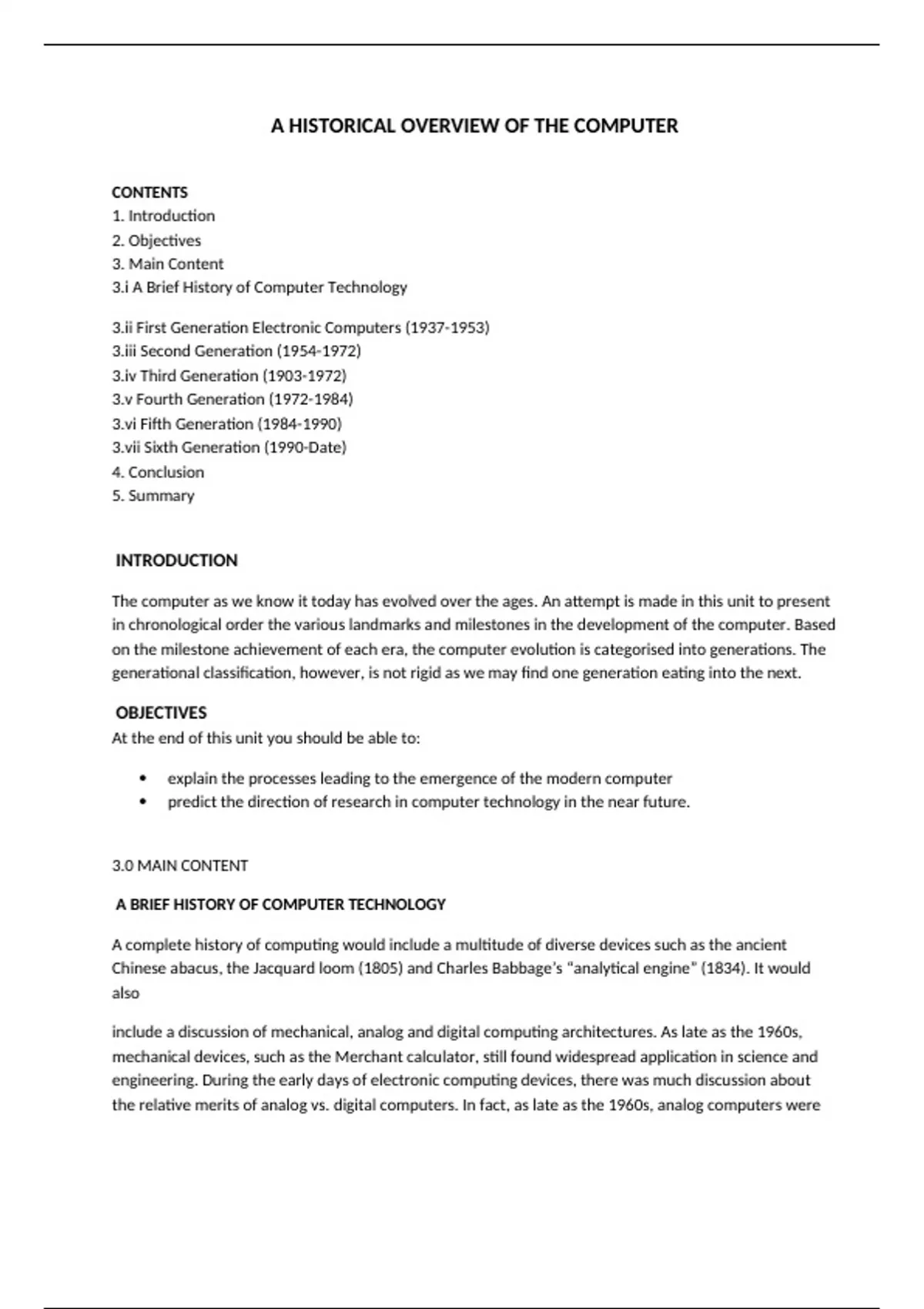 A HISTORICAL OVERVIEW OF THE COMPUTER