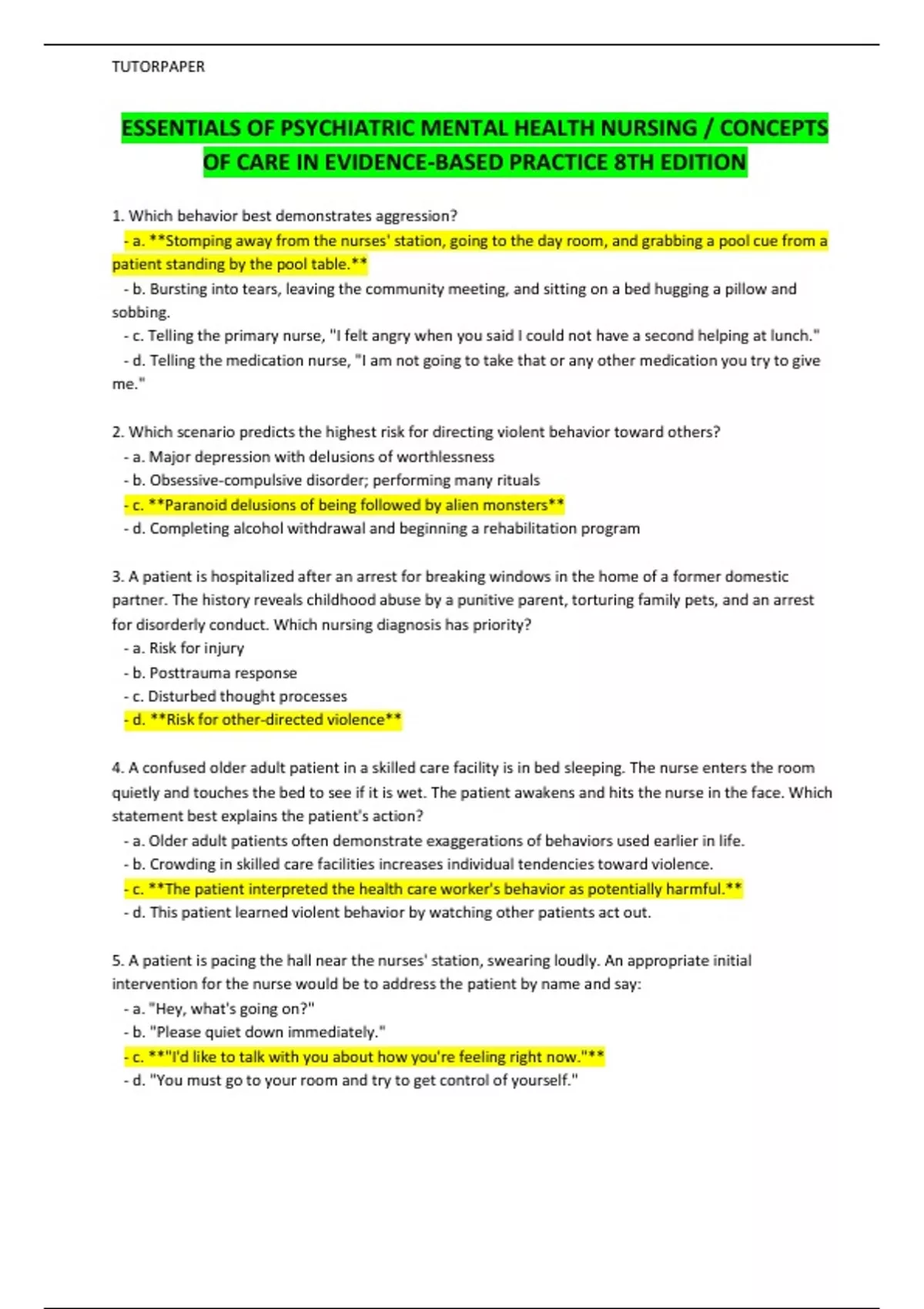 ESSENTIALS OF PSYCHIATRIC MENTAL HEALTH NURSING / CONCEPTS