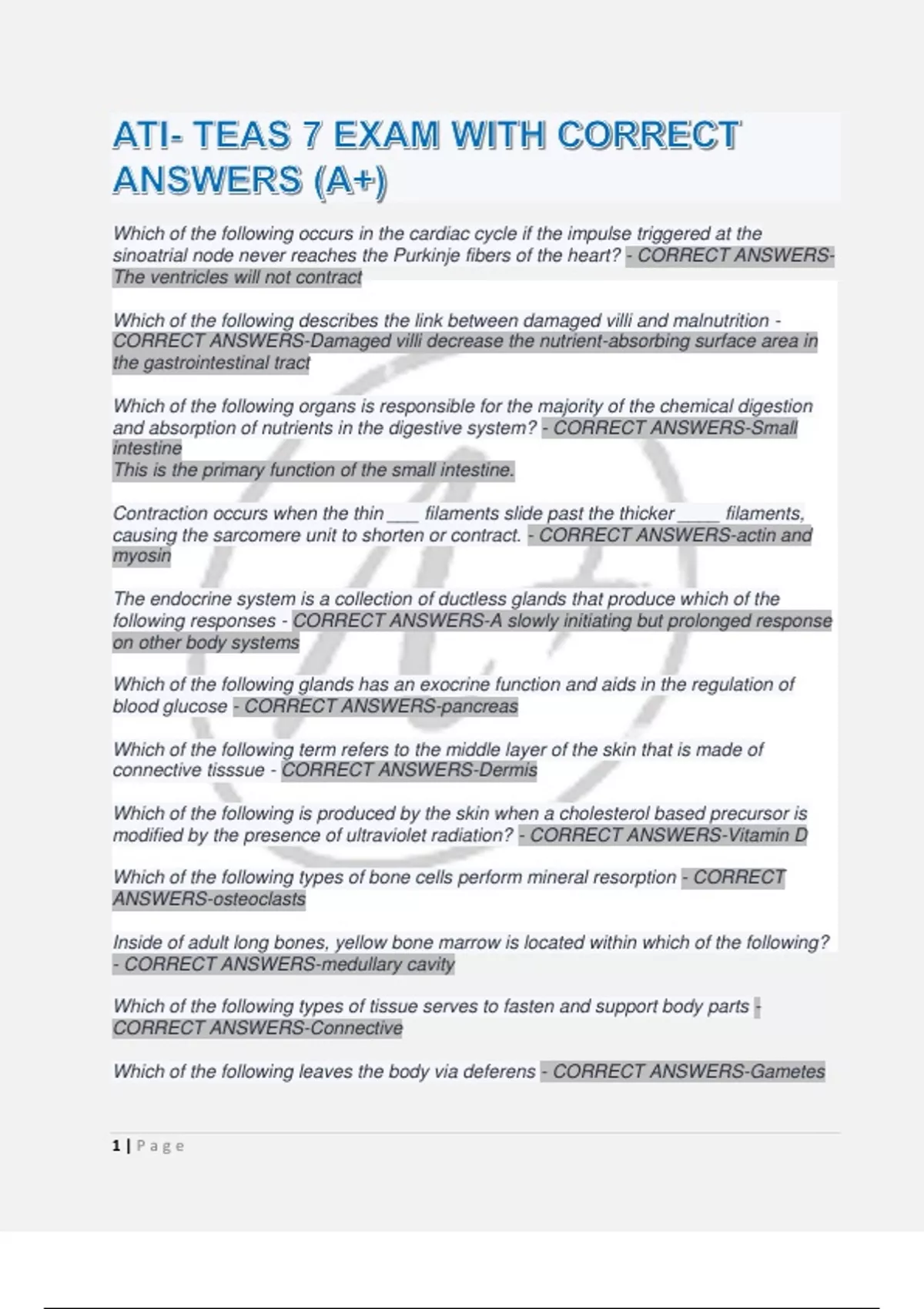 CORRECT ANSWERS-Damaged villi decrease the nutrient-absorbing surface area in
