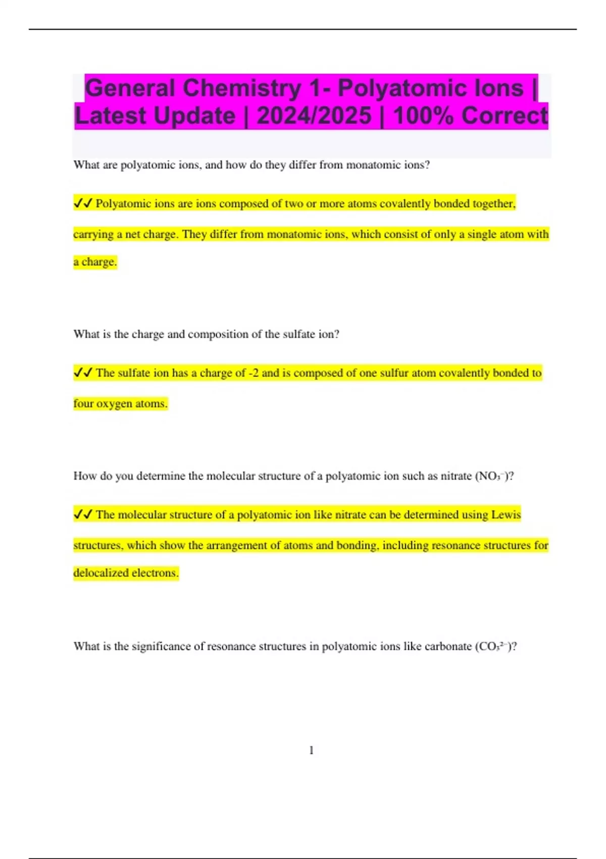 , ✔✔ Resonance structures in polyatomic ions like carbonate represent different ways the