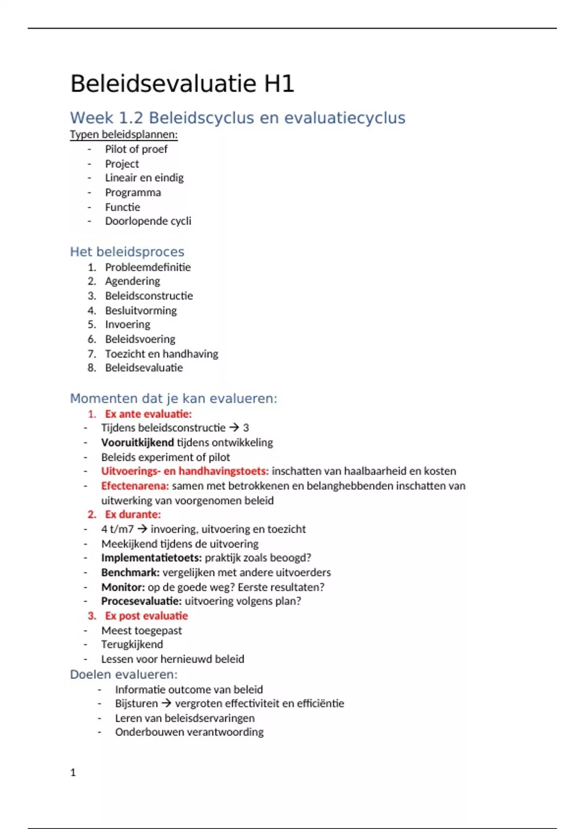 Beleidsevaluatie H1