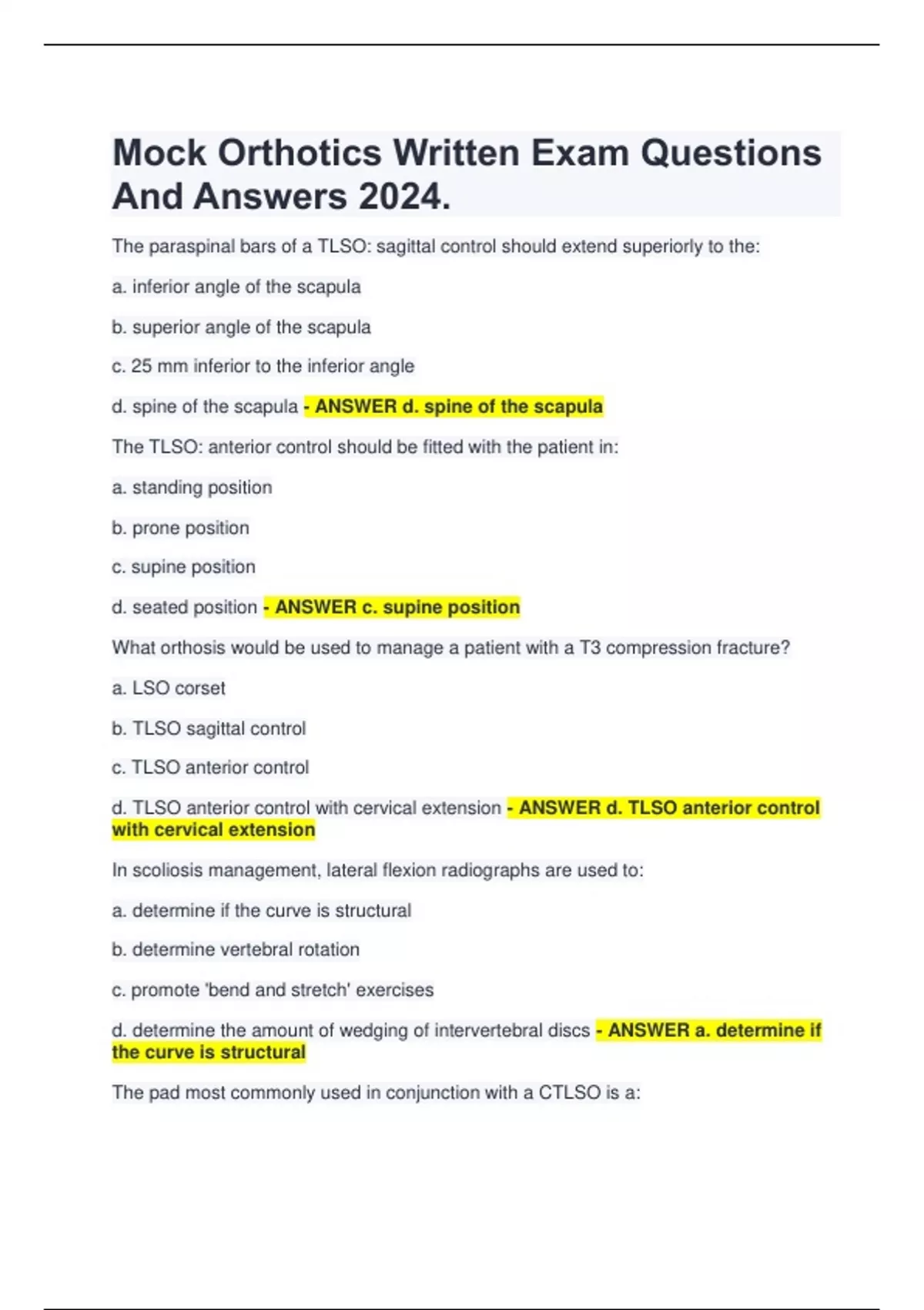 d. TLSO anterior control with cervical extension - ANSWER d. TLSO anterior control