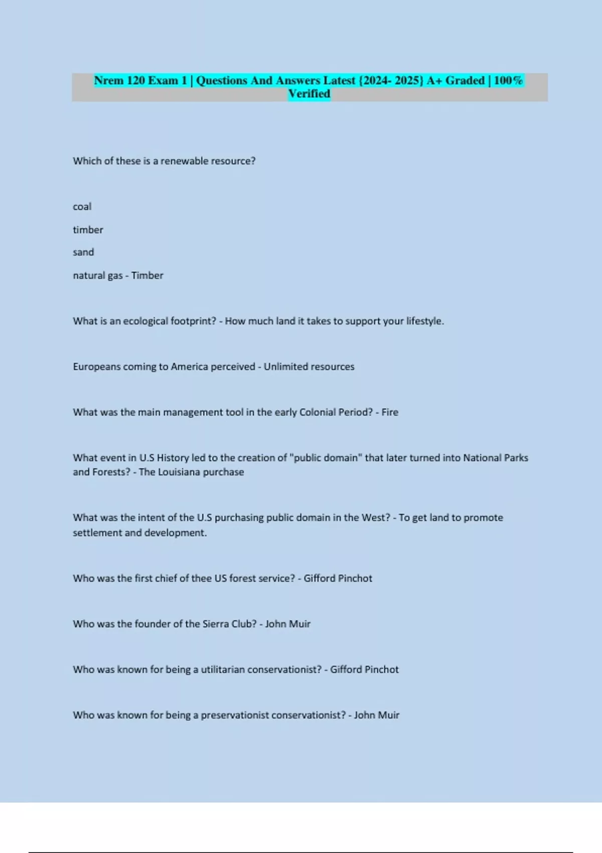 Nrem 120 Exam 1 | Questions And Answers Latest {2024- 2025} A+ Graded | 100%