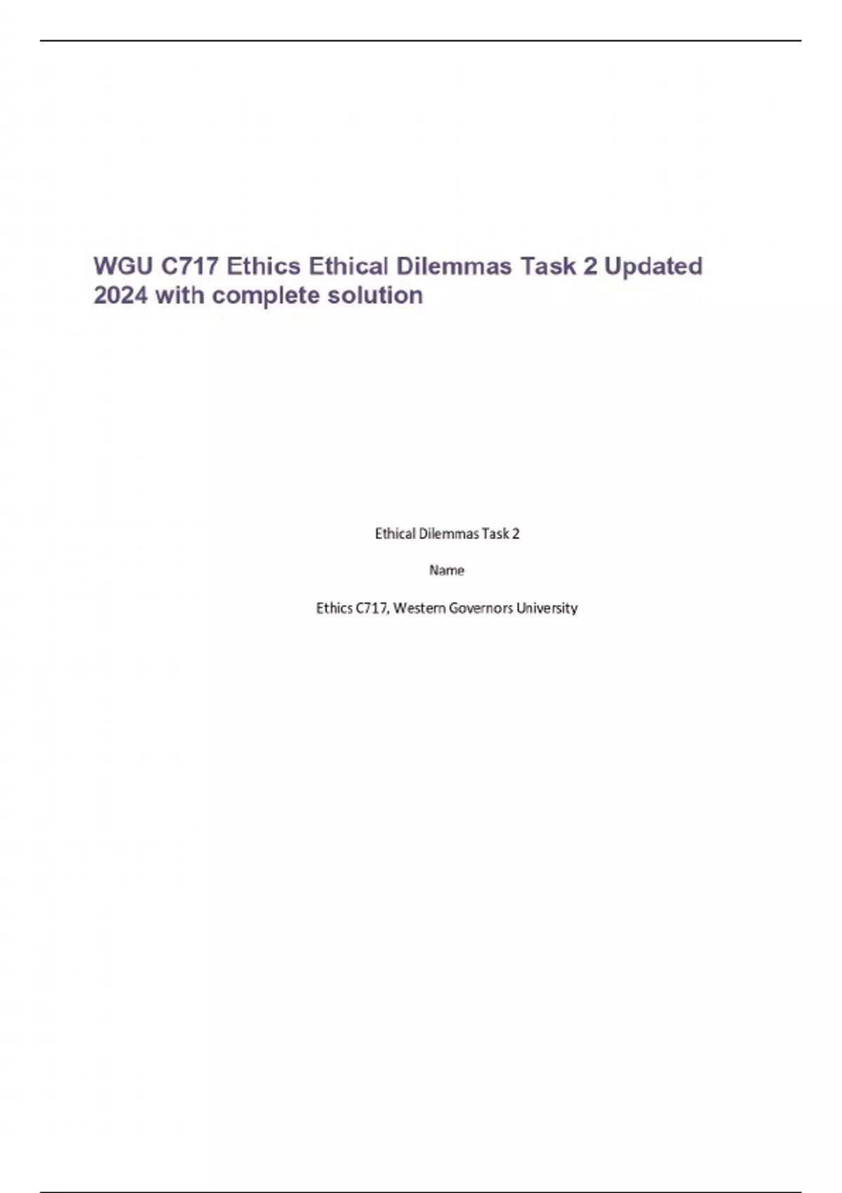 WGU C717 Ethics Ethical Dilemmas Task 2 Updated 2024 with complete solution WGU C717 Ethics Ethical Dilemmas Task 2 Updated 2024 with complete solution WGU C717 Ethics Ethical Dilemmas Task 2 Updated 2024 with complete solution