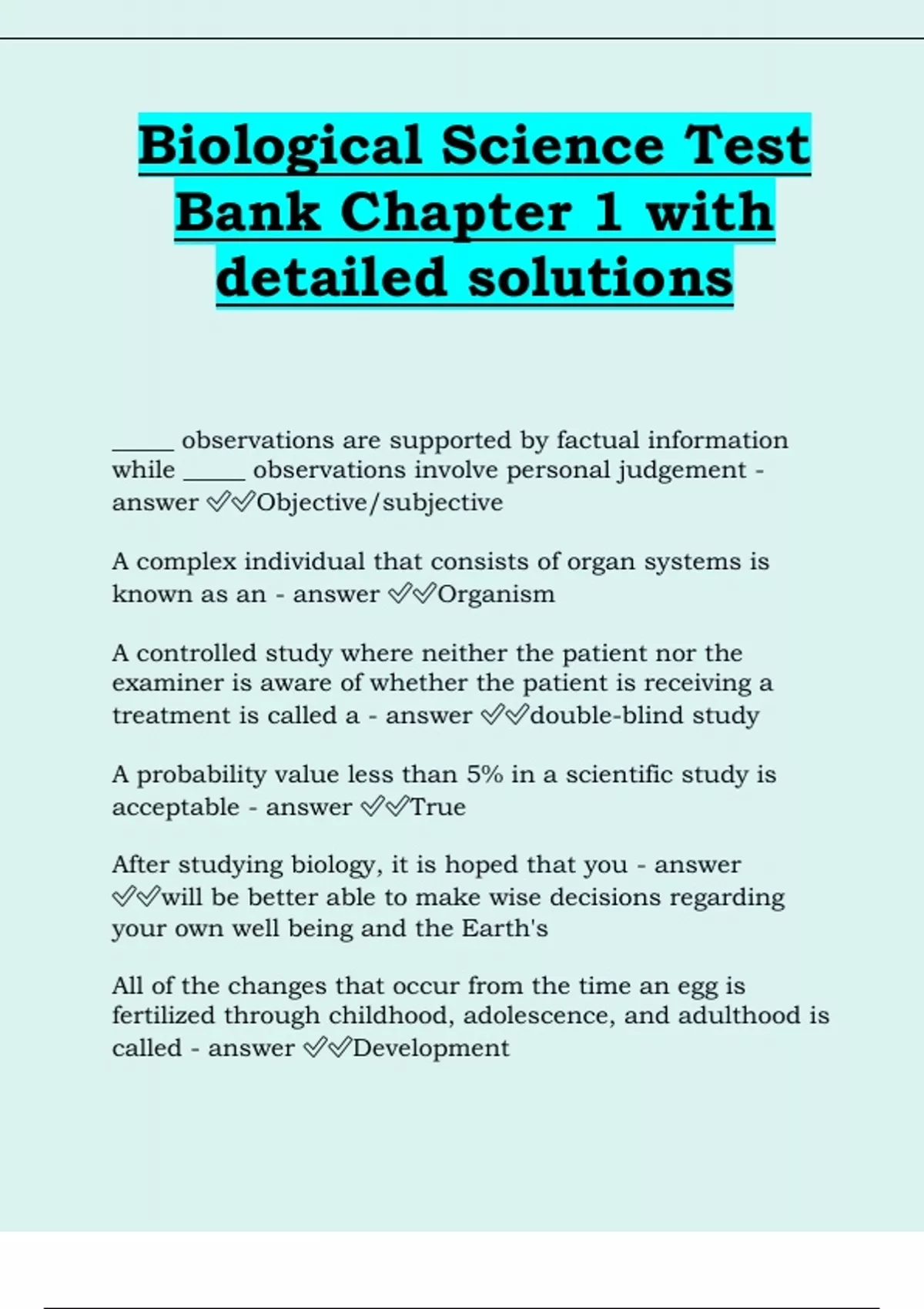Biological Science Test