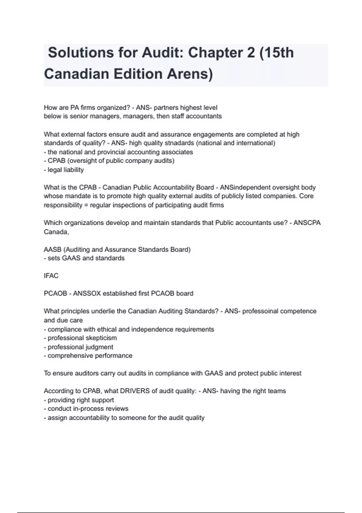 According to CPAB, what DRIVERS of audit quality: - ANS- having the right teams