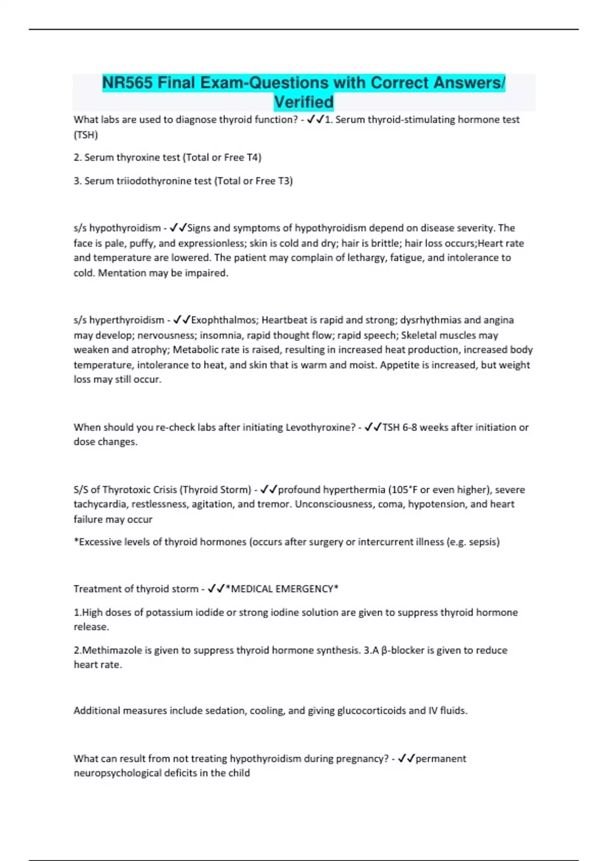 When should you re-check labs after initiating Levothyroxine? - ✔✔TSH 6-8 weeks after initiation or