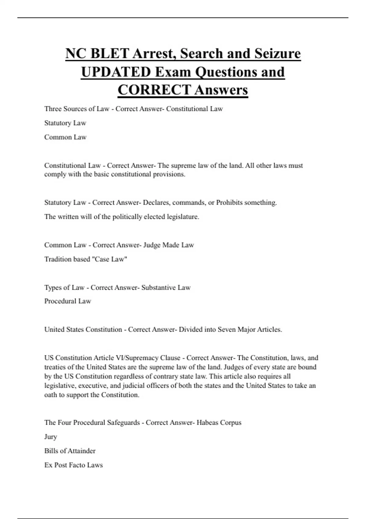 Constitutional Law - Correct Answer- The supreme law of the land. All other laws must