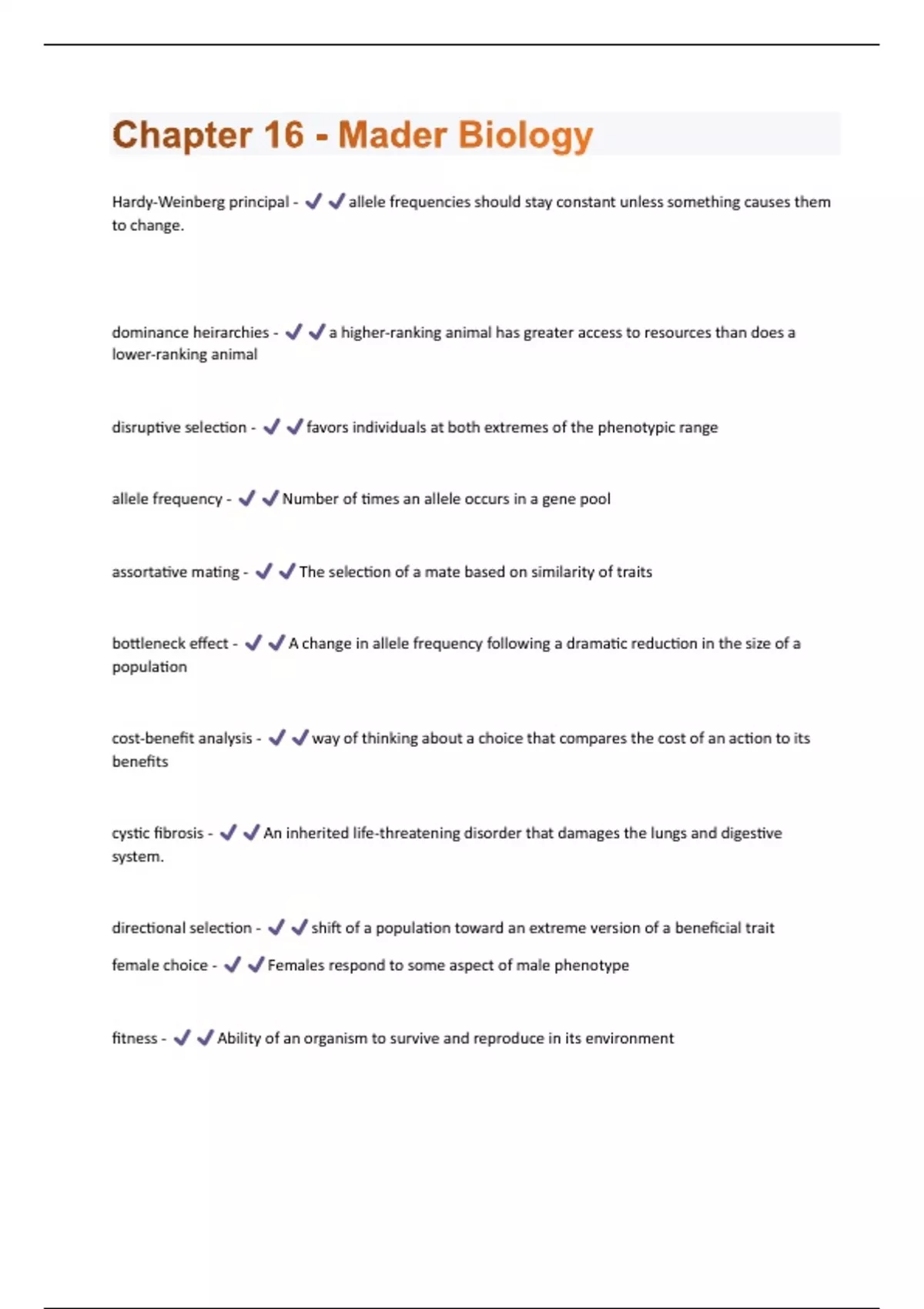 Hardy-Weinberg principal - allele frequencies should stay constant unless something causes them