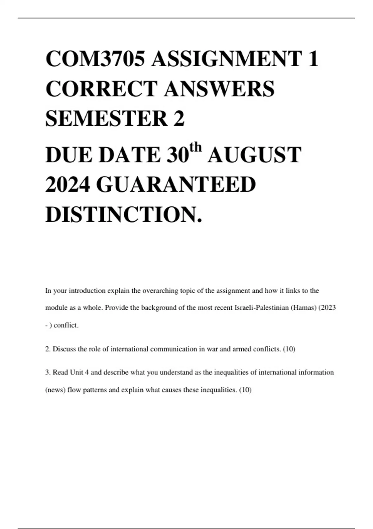 The assignment focuses on the recent Israeli-Palestinian conflict involving Hamas, which is