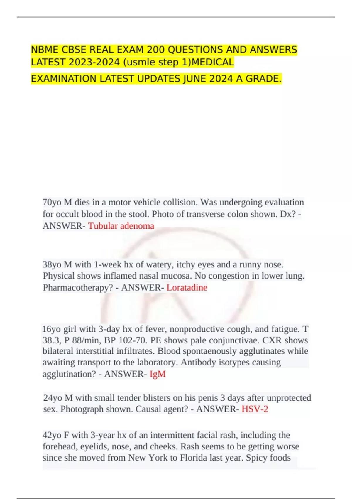 LATEST 2023-2024 (usmle step 1)MEDICAL