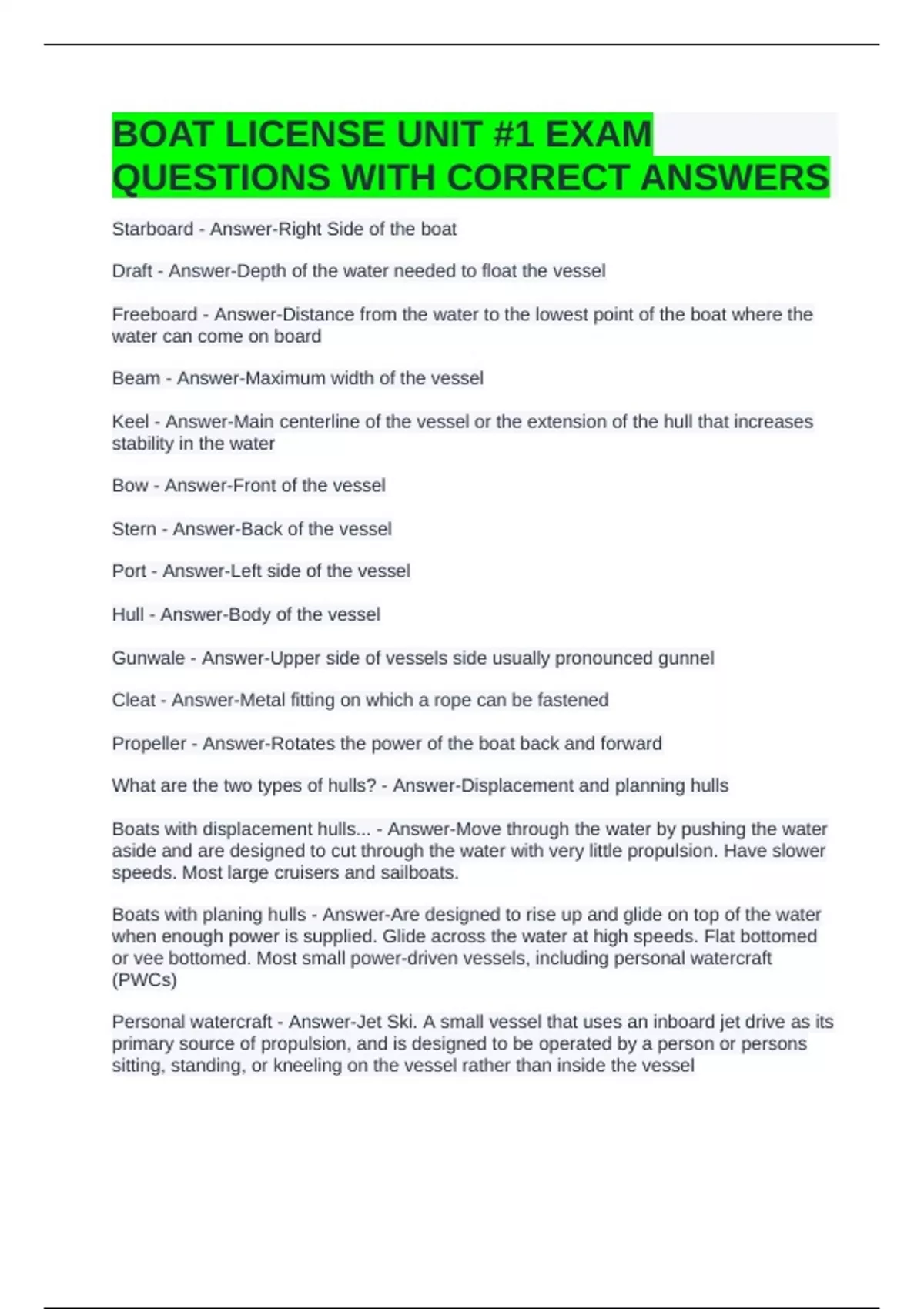 Length overall is measured from... - Answer-The tip of the bow to the stern of the vessel