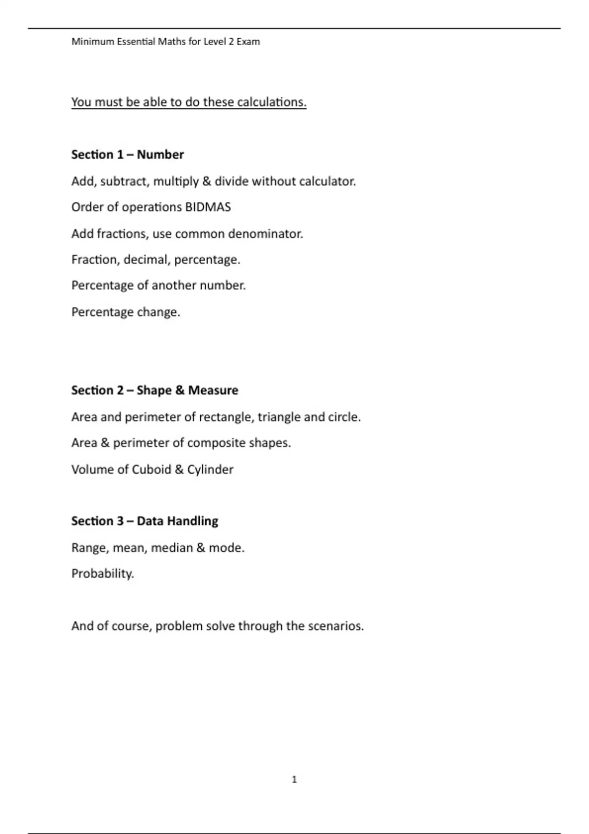 Minimum Essential Maths for Level 2 Exam