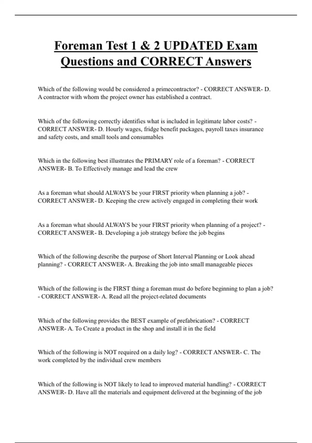 Which in the following best illustrates the PRIMARY role of a foreman? - CORRECT