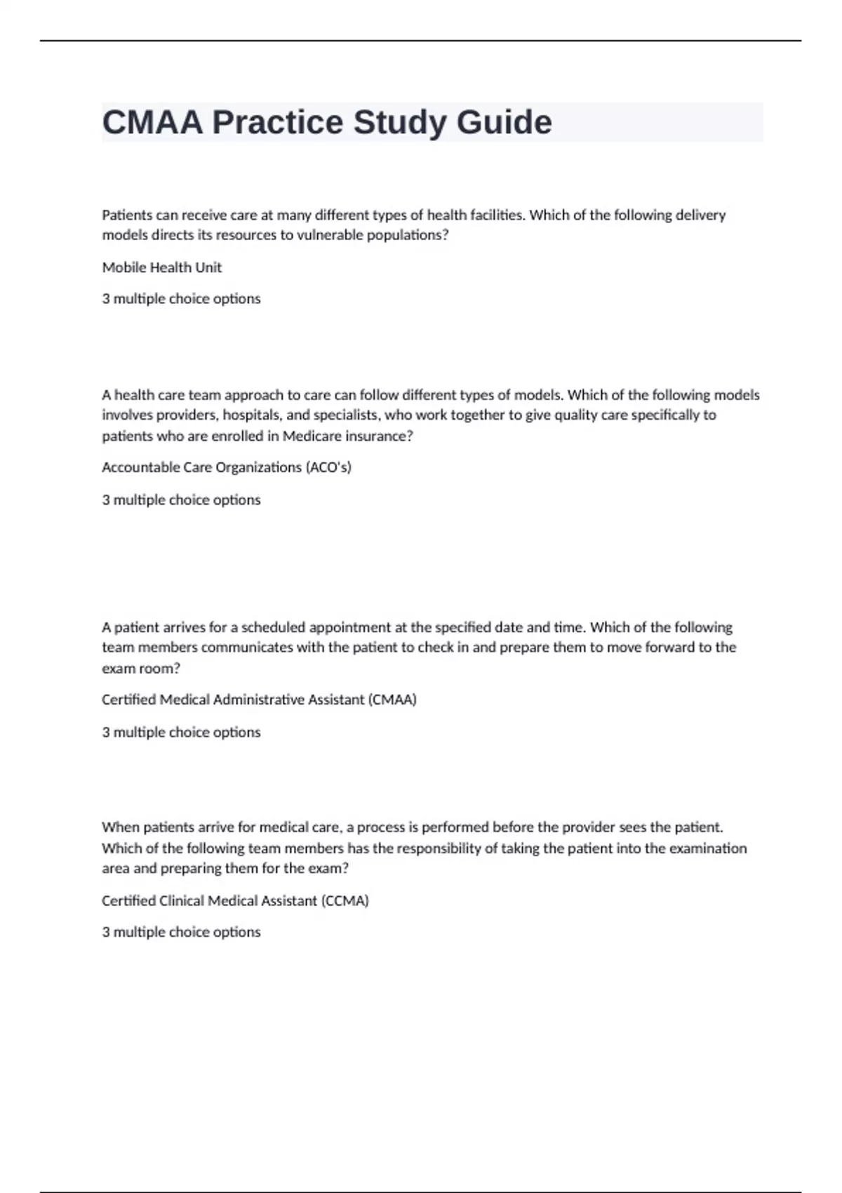 CMAA Practice Study Guide