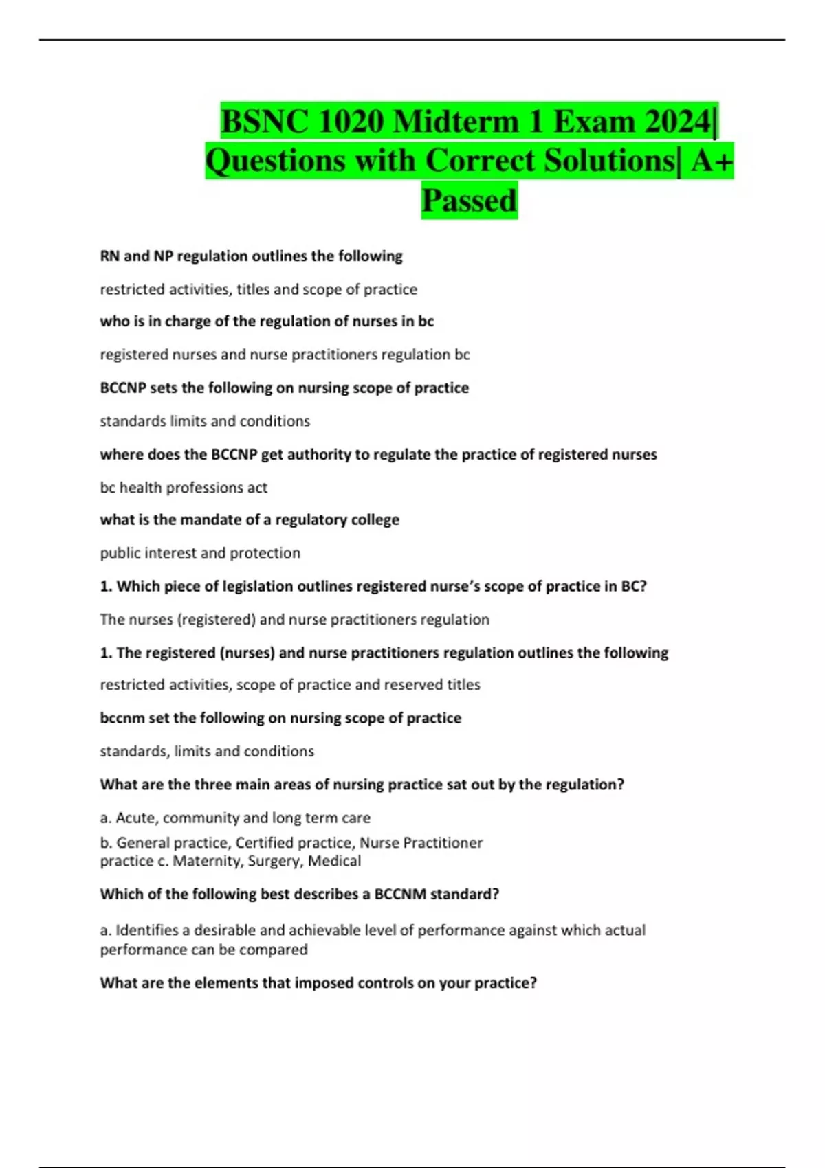1. Which piece of legislation outlines registered nurse’s scope of practice in BC?