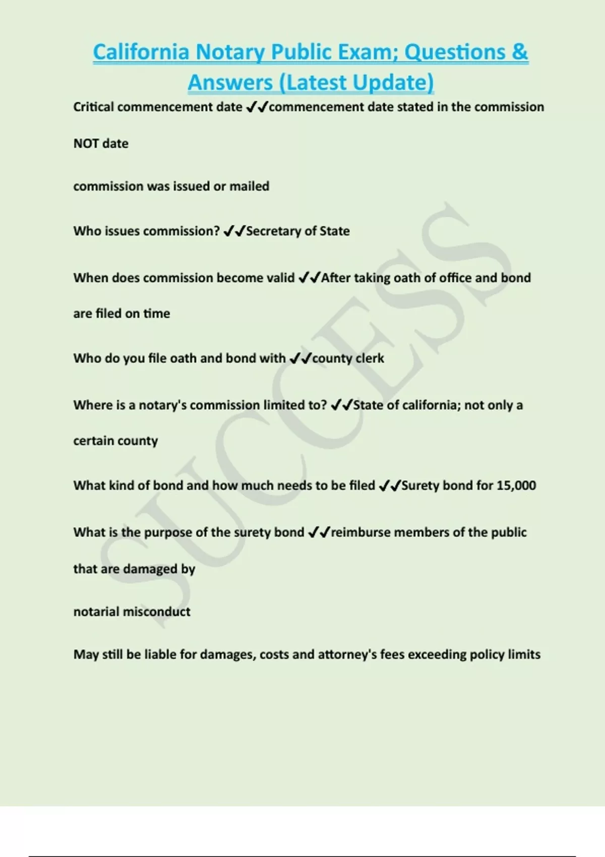 , California Notary Public Exam; Questions &