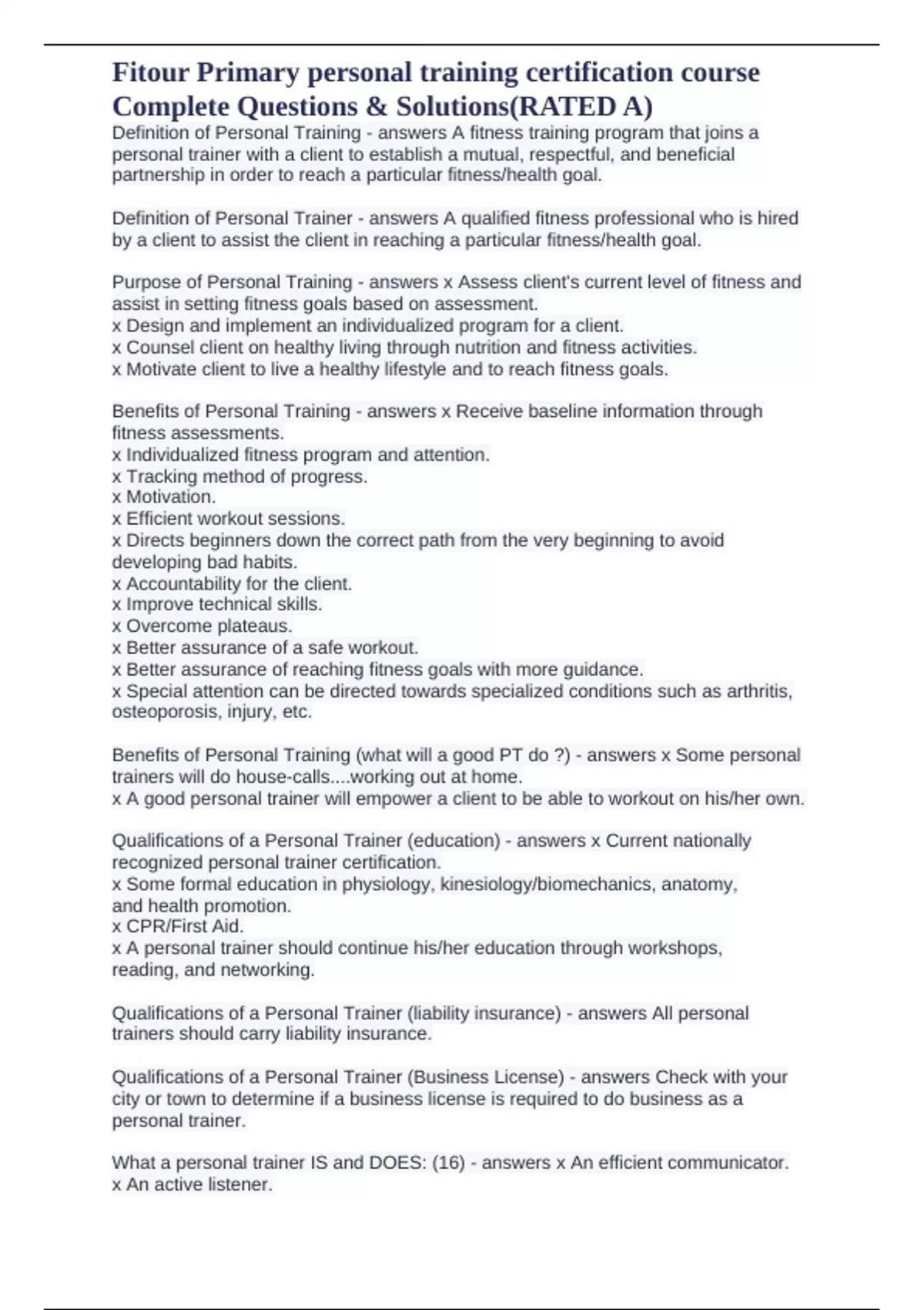 Benefits of Personal Training - answers x Receive baseline information through